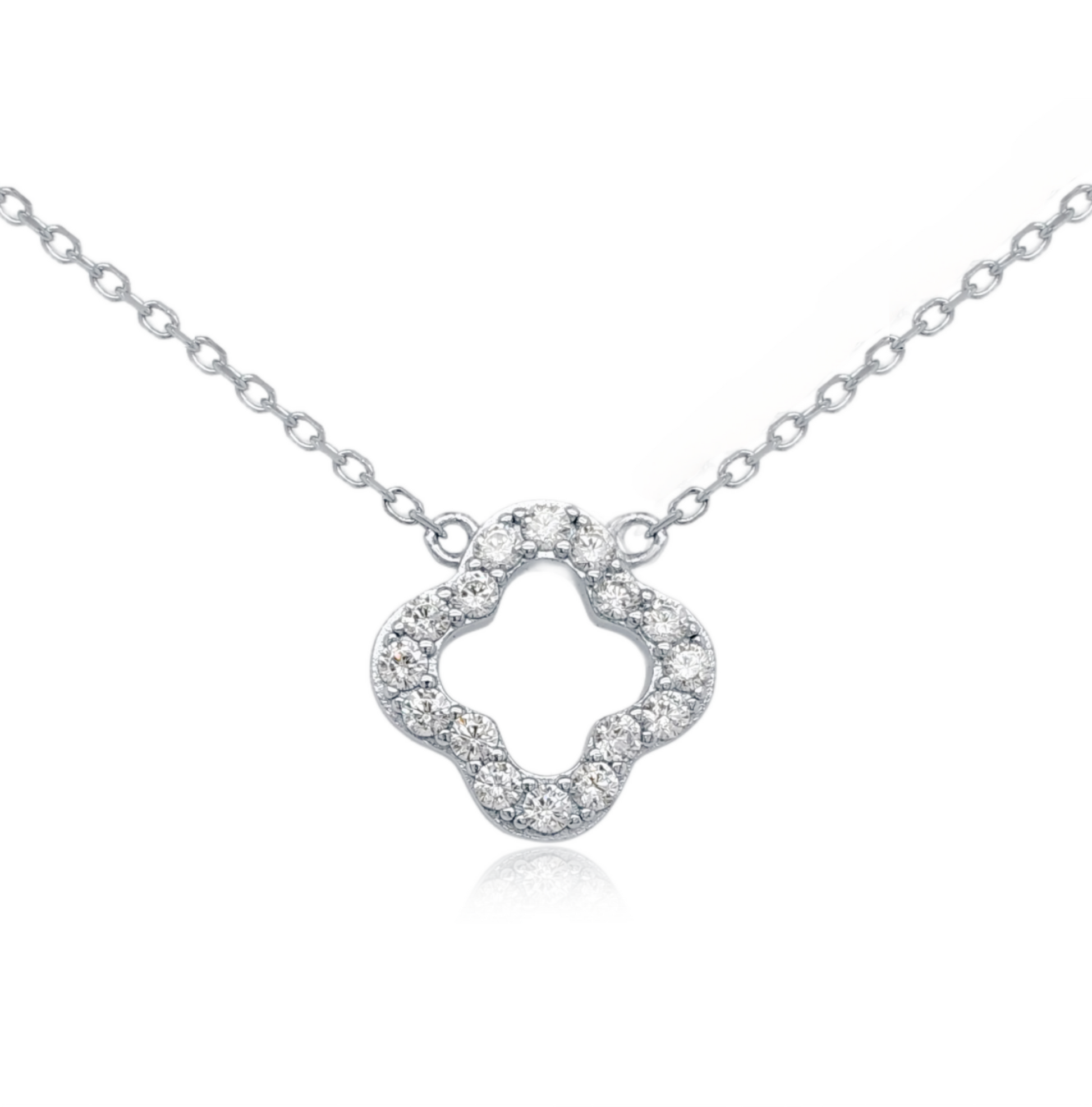 Add a touch of elegance and fortune to your ensemble with this stunning Sterling Silver CZ Outline Clover Necklace. With its 14-inch chain and a 3-inch extension, it is the perfect accessory for any occasion.