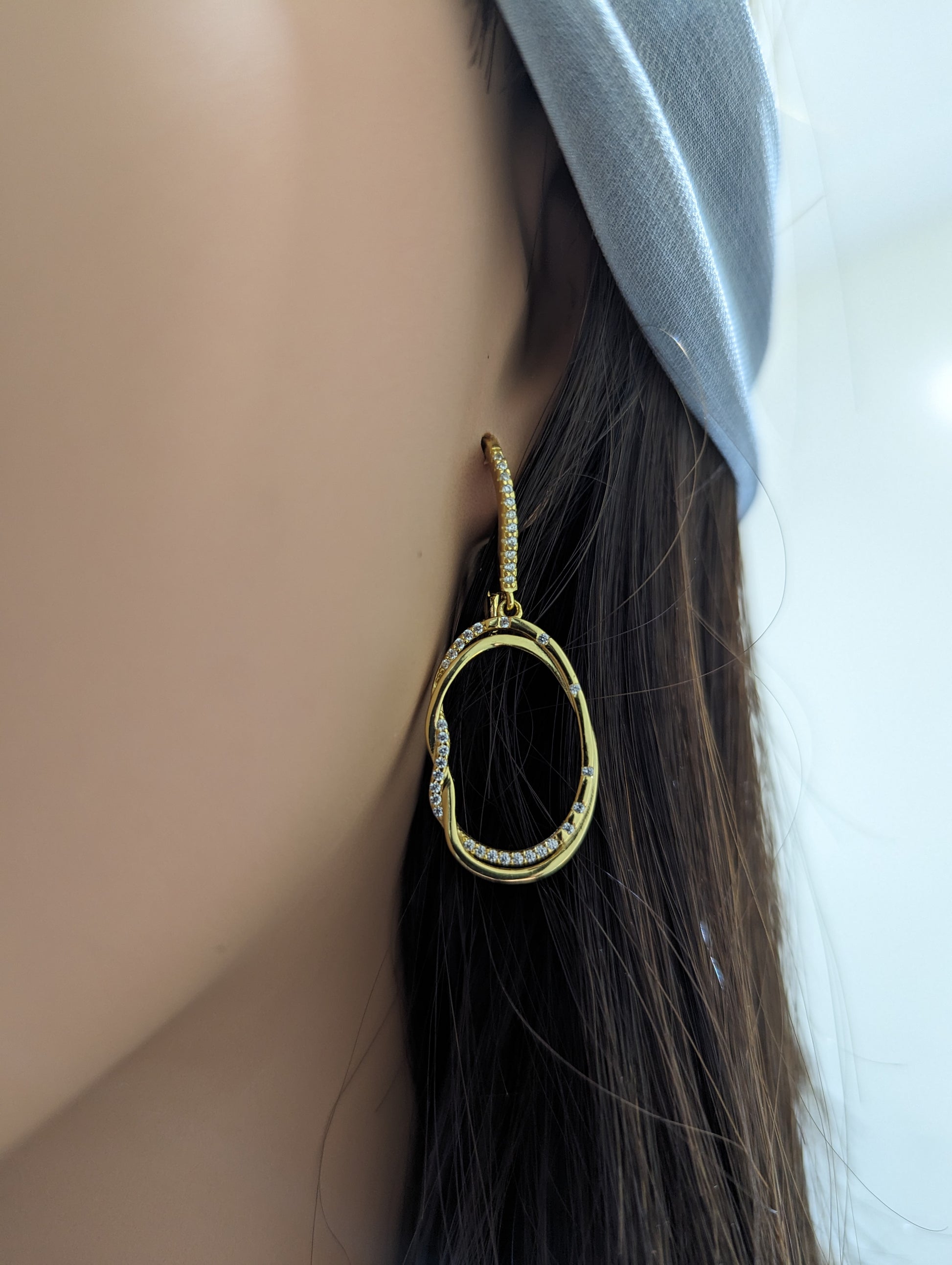 A pair of intriguing side-braided earrings that are a modern classic. They've got a uniquely contemporary shape with tasteful vintage gold-plated and sparkling CZ diamonds. The rhodium-plated version gives a silvery finish that almost seems to glow with the jewels. The diamonds are interspersed to keep things subtle but eye-catching. You can add a touch of timeless glamour to your dressy outfits with these splendid earrings. They're versatile enough to go with just about every color and dressing style.
