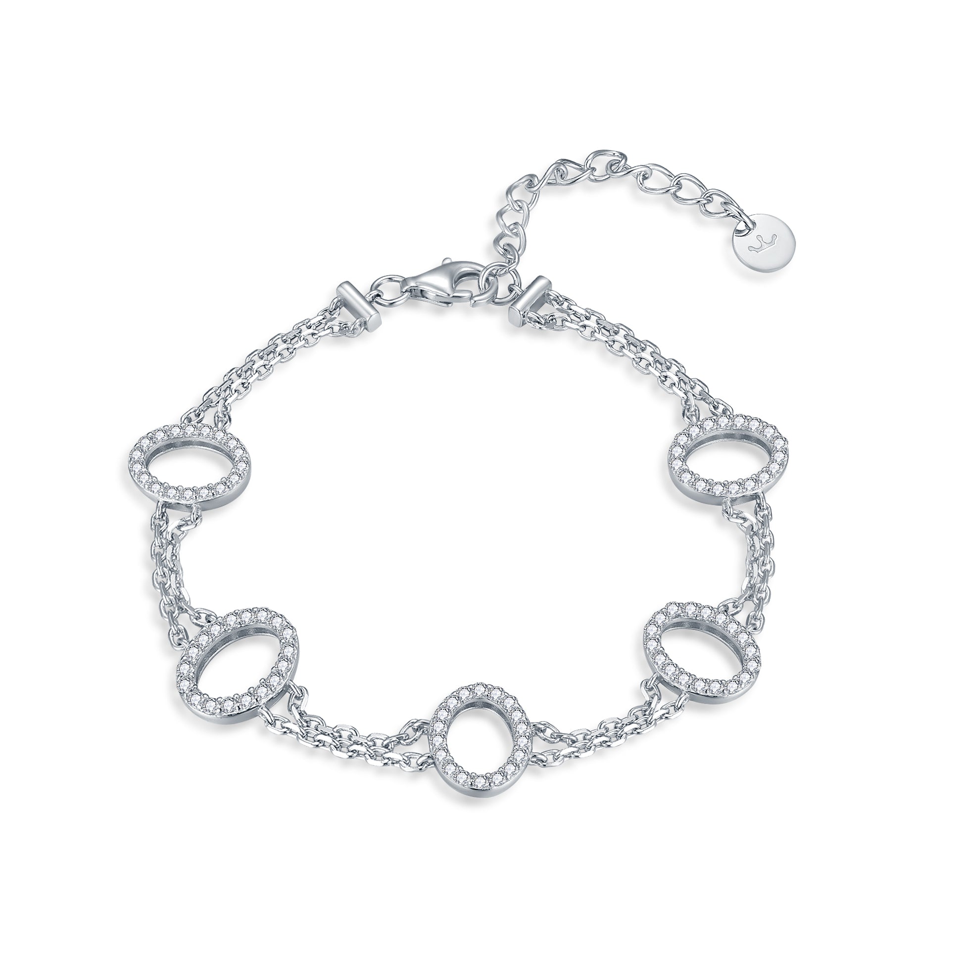 Sterling Silver CZ Ovals Bracelet on Double Chain