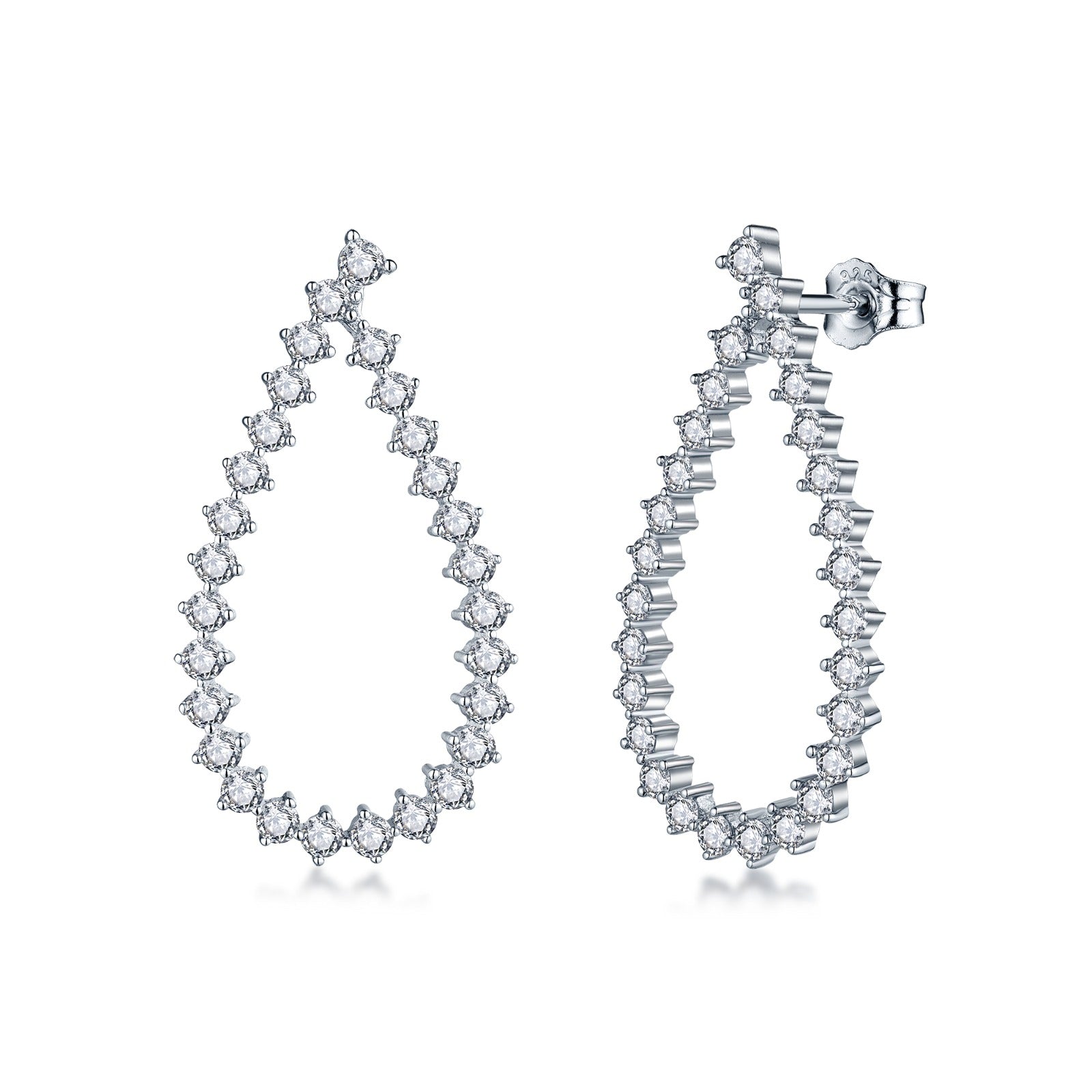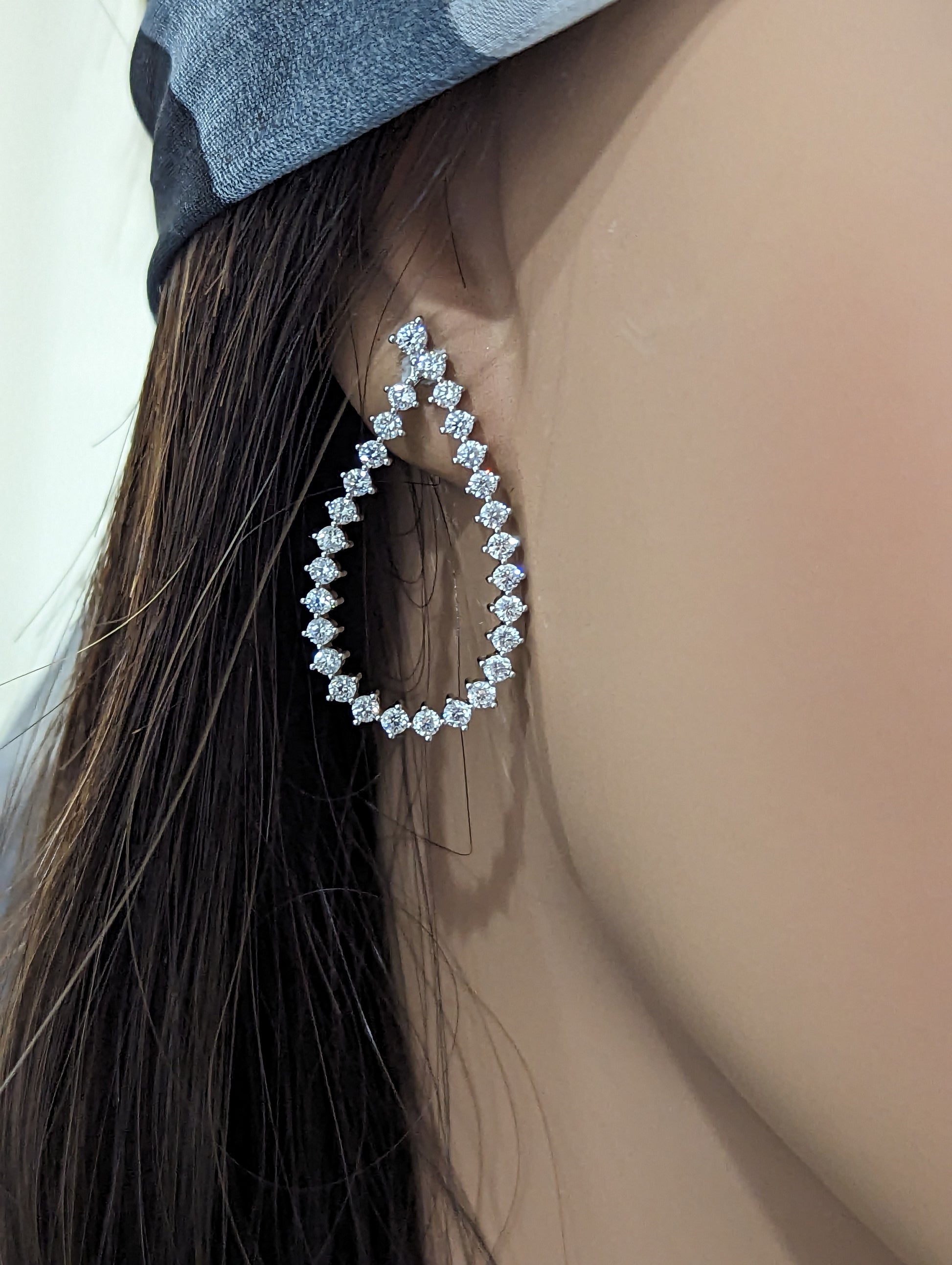 These sterling silver front/back hoop earrings feature stunning cubic zirconia stones that sparkle brilliantly in any light. The small size measures 1.25 inches in length, making it perfect as an understated accessory that adds subtle elegance to any ensemble. The large size measures 1.75 inches, creating a bold and eye-catching look that's sure to turn heads wherever you go!'' in height