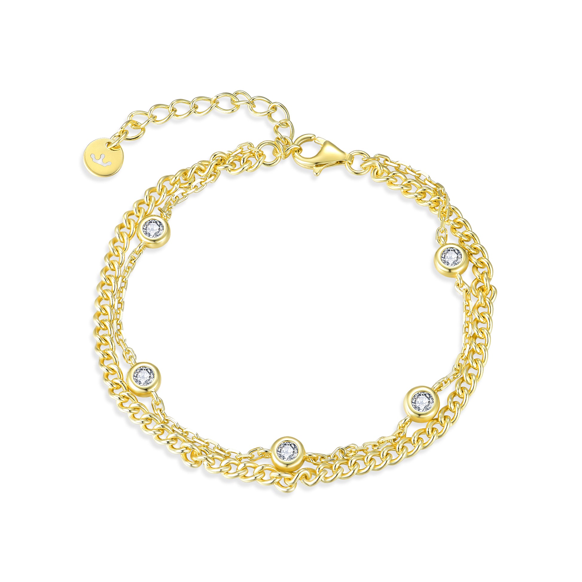Sterling Silver Double Chain Cuban and Diamond by the Yard Bracelet