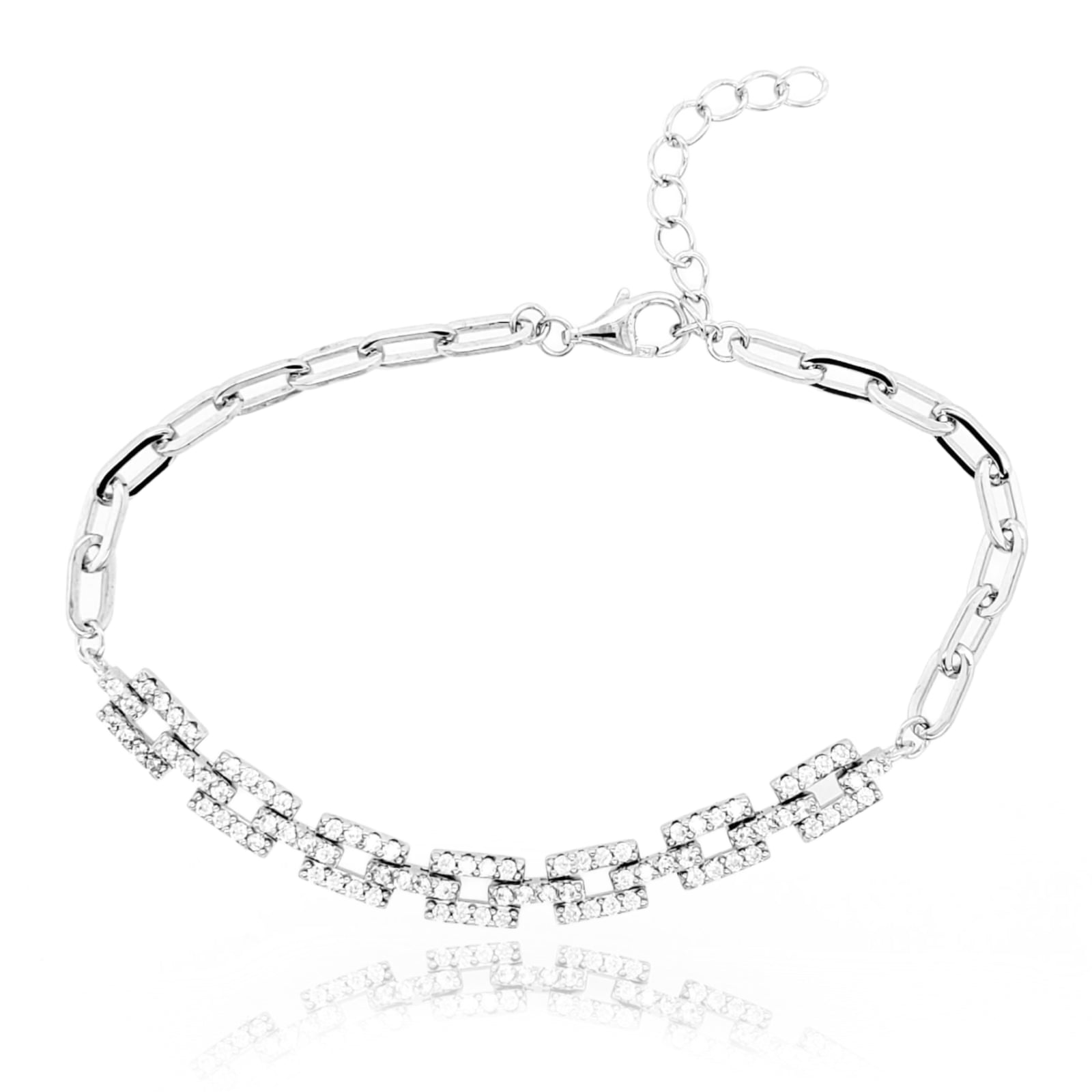 Sterling Silver Elegant CZ Diamond Rectangles Bracelet