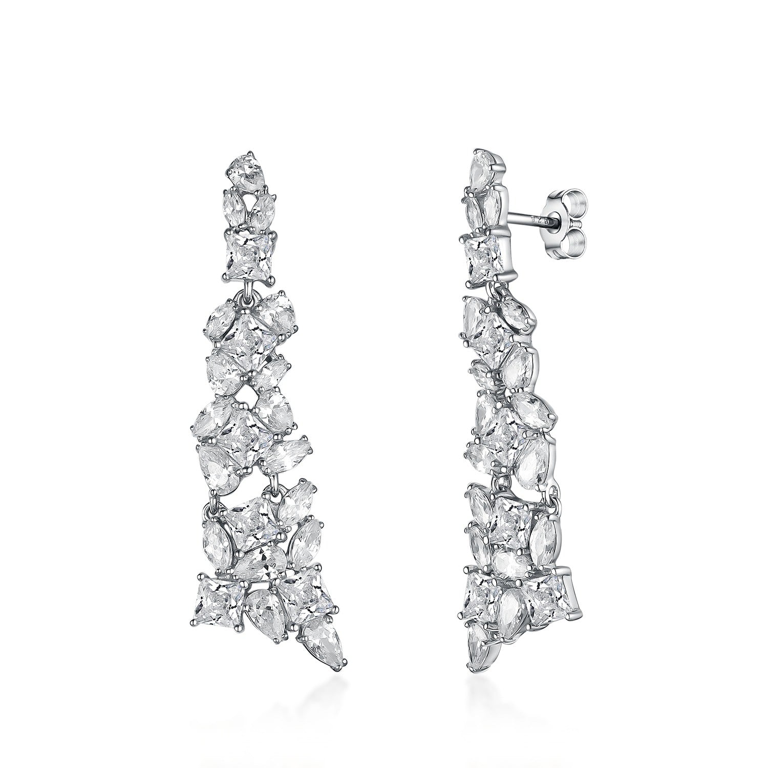 These stunning earrings are the perfect addition to any jewelry collection. The elegant triangular cluster design is expertly crafted with a rhodium plating that not only adds a touch of sophistication, but also provides long-lasting durability. The beautiful sterling silver base is accentuated by sparkling cubic zirconia stones, creating a dazzling effect that is sure to turn heads. The earrings are mounted on posts for a secure and comfortable fit, and measure approximately 1.75 inches in length, making them the perfect choice for any occasion. Whether you're dressing up for a night out or simply looking to add a touch of glamour to your everyday look, these earrings are sure to make you feel confident and beautiful.