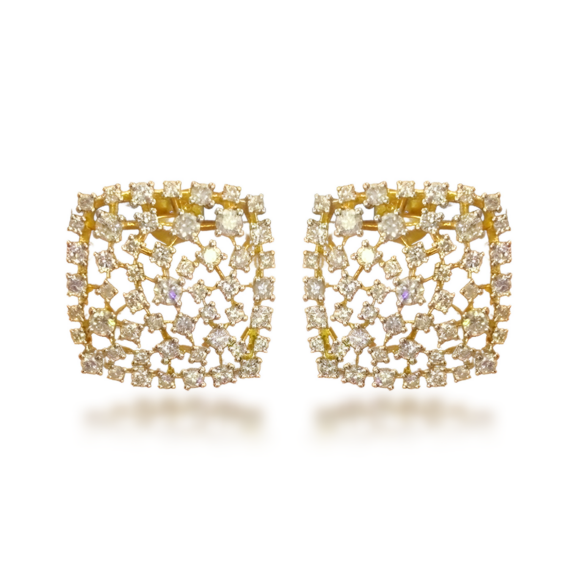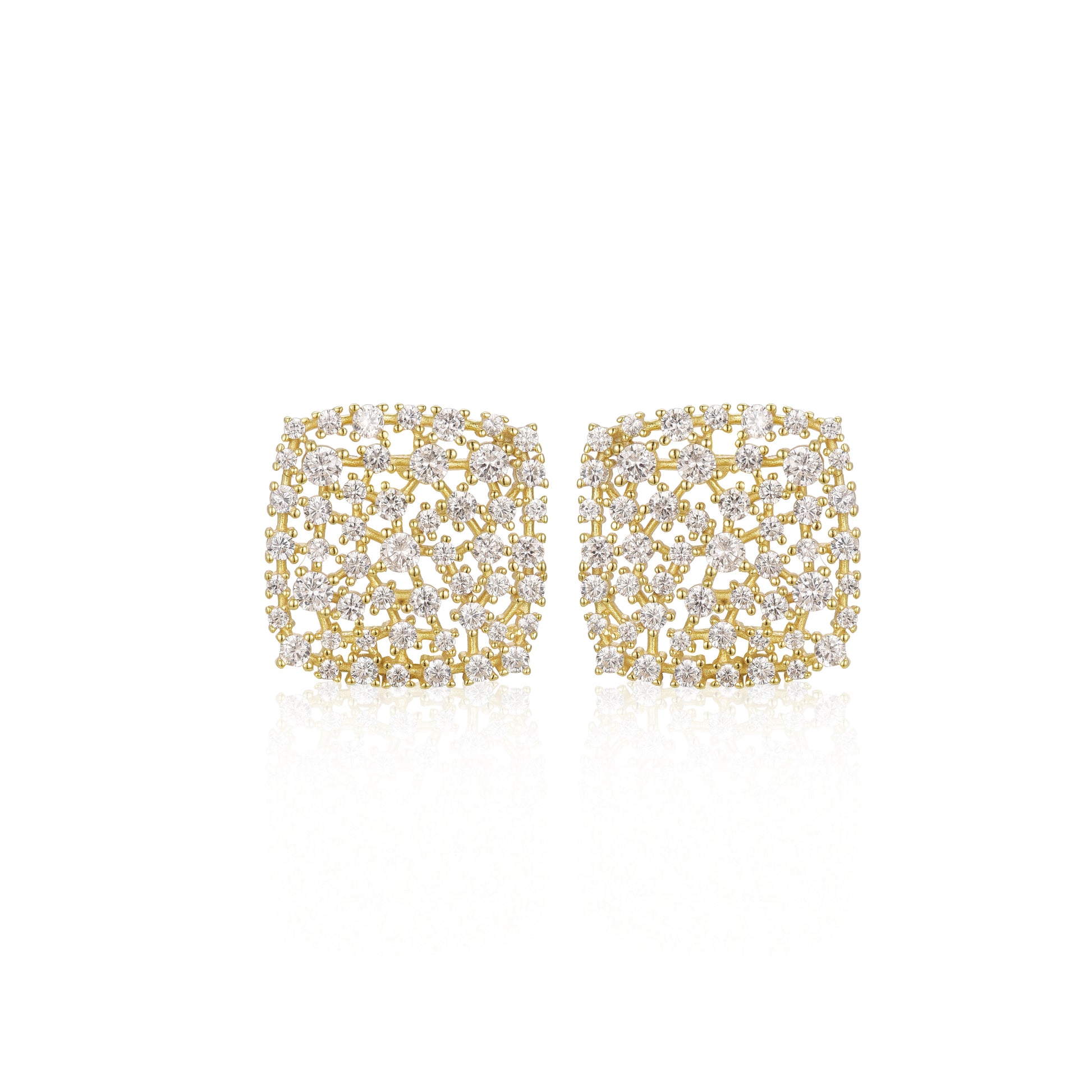 "Indulge in luxury with our Sterling Silver and Gold-Plated Cushion Sprinkled Cluster Stud Earrings. Made with the finest materials, these earrings are the perfect addition to any outfit. Shimmer and shine with every step, exuding elegance and sophistication."