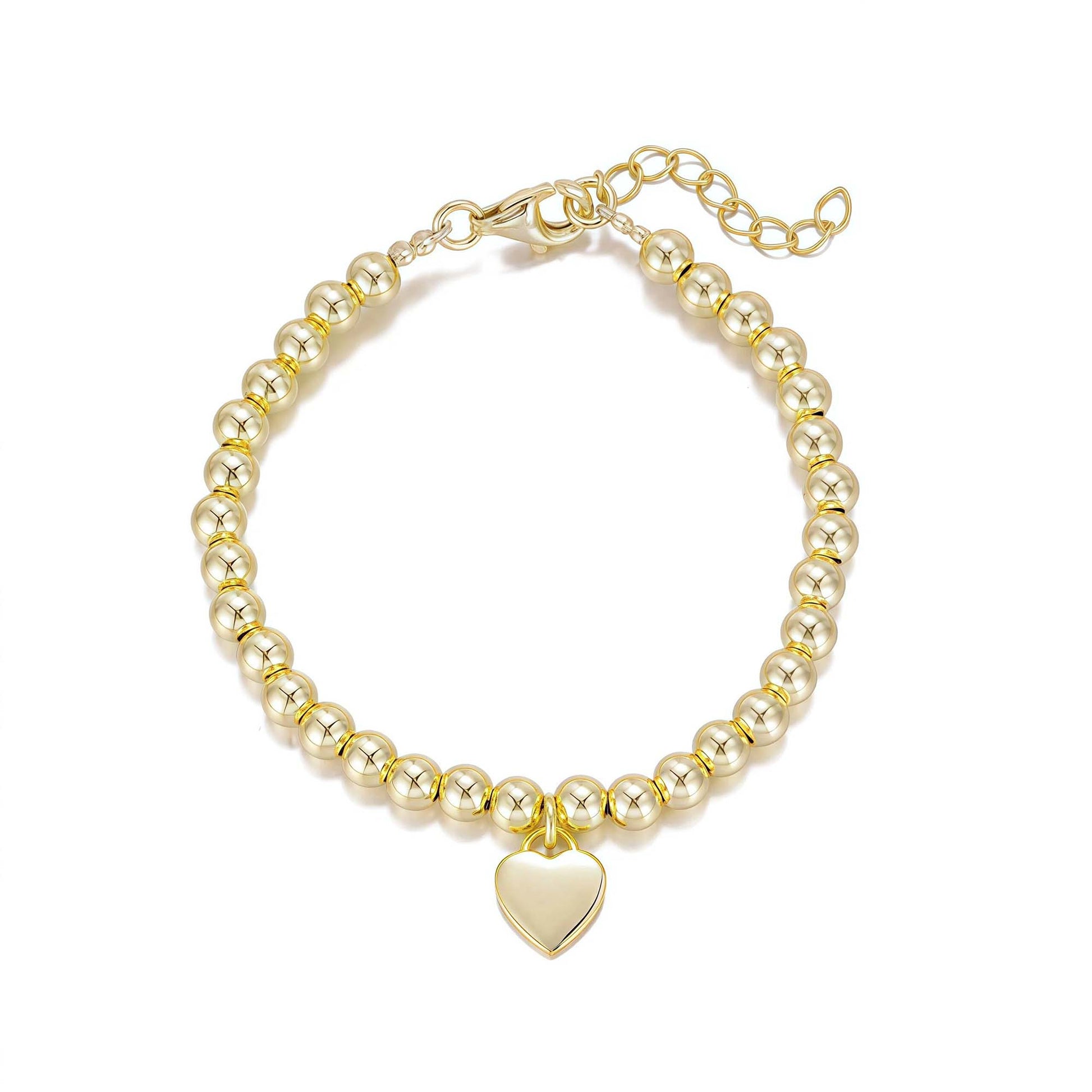 Sterling Silver Gold-Plated Balls Bracelet with Center Heart