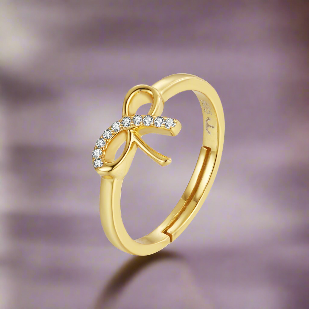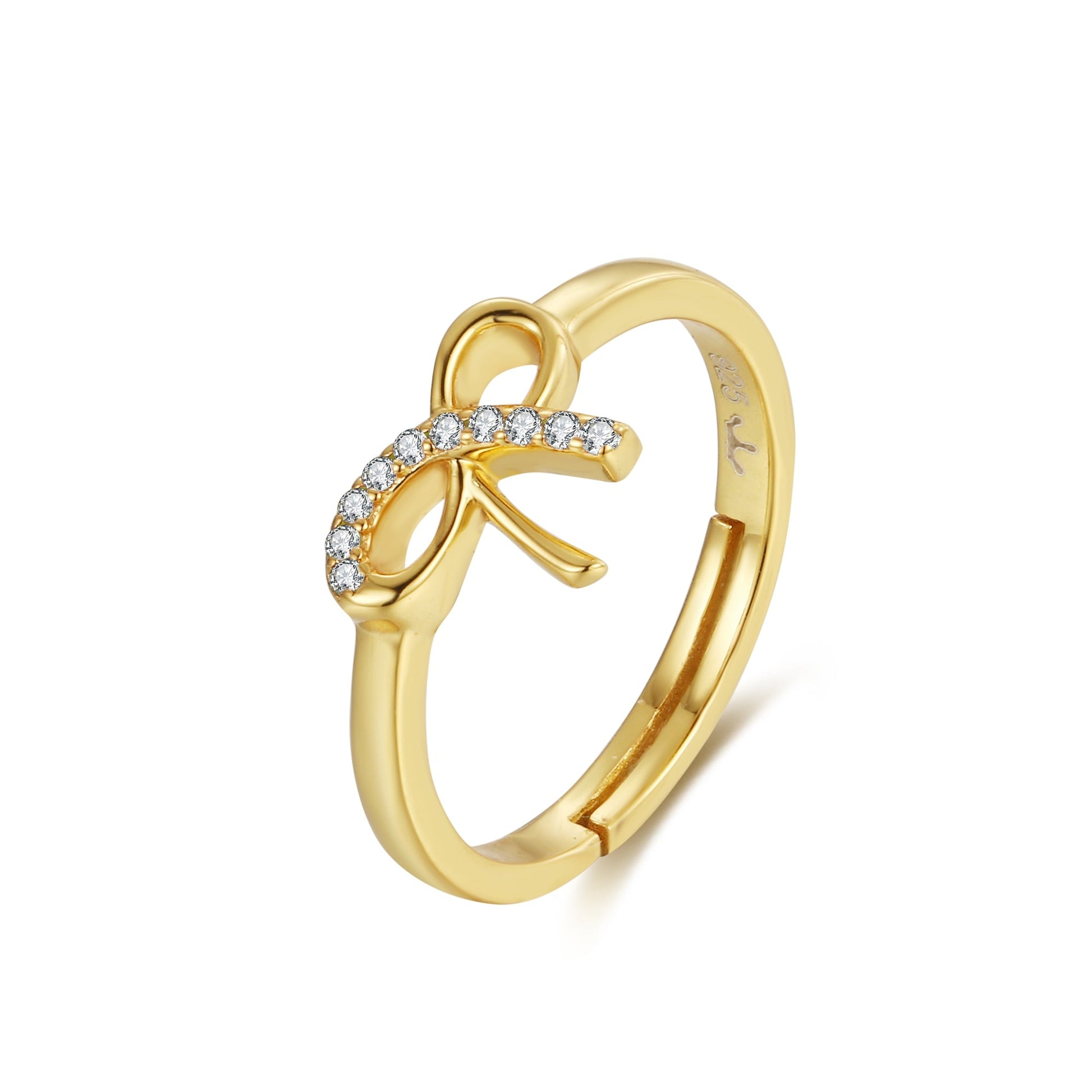 Sterling Silver Gold Plated Children's CZ Bowknot Ring