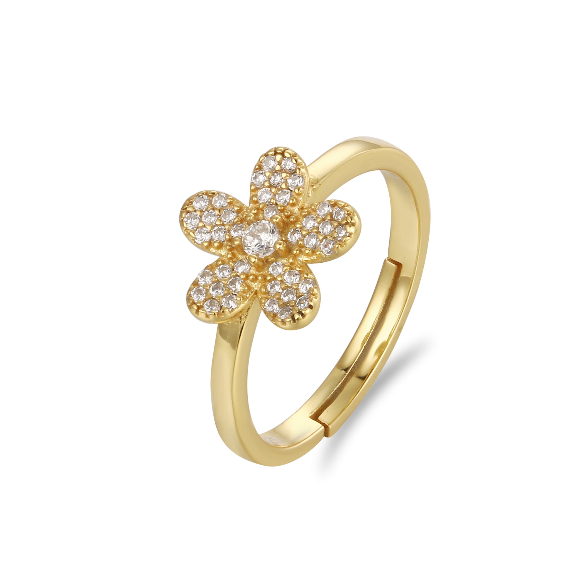 This stunning Sterling Silver Gold Plated Five Petal CZ Flower Ring is perfect for children, with an adjustable size ranging from 3-5 or 5-7! Adorned with sparkling clear CZ or vibrant ruby CZ, it is sure to capture their imagination and add a touch of whimsy to any outfit.