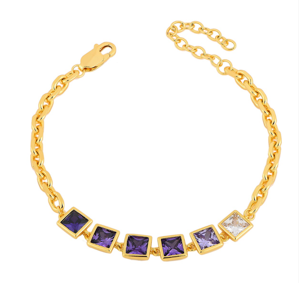 Discover the striking beauty of the Sterling Silver Colored Stone Squares Bracelet, available in Pink Mix, Purple Mix, Blue Mix (Rhodium Plated), or Green/Yellow Mix. With a length of 6.5'' plus an additional 1.5'', this bracelet adds a touch of elegance to any outfit.
