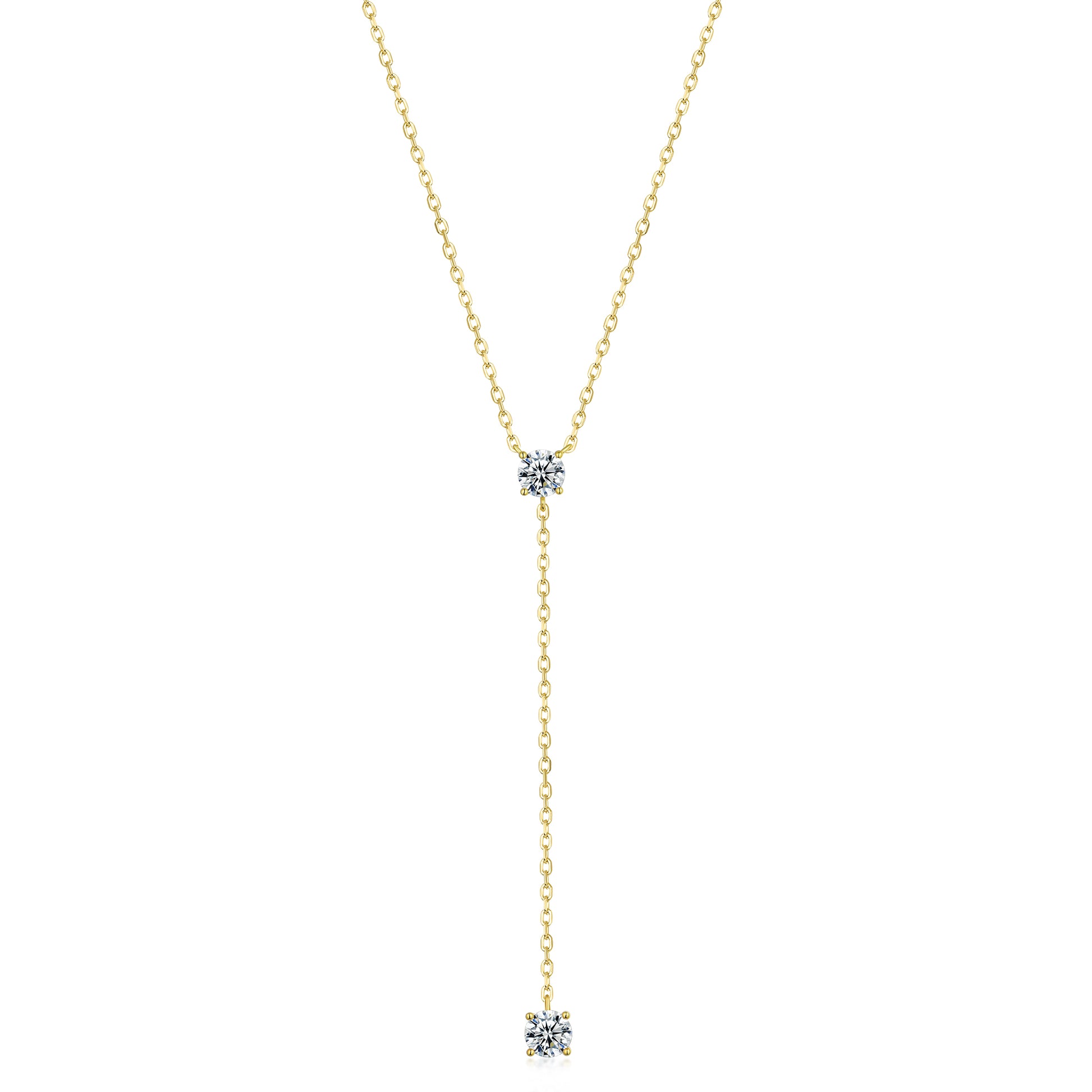 Sterling Silver Gold Plated CZ Double Solitaire Lariat Necklace