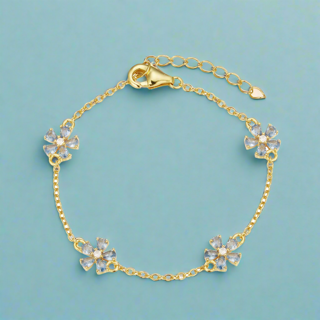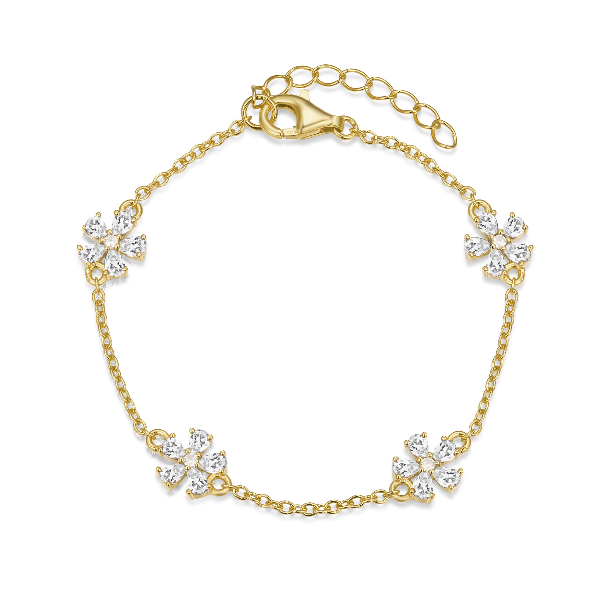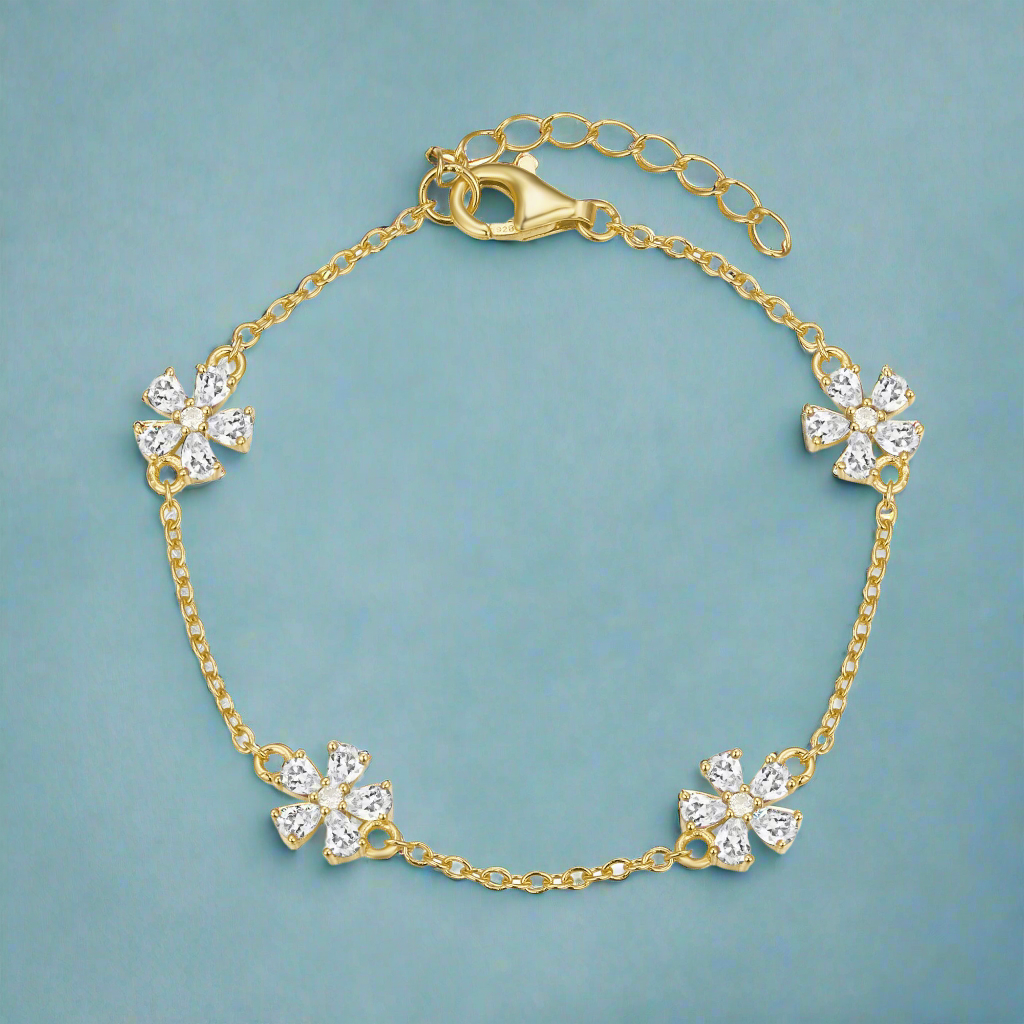 Sterling Silver Gold Plated CZ Flower Station Bracelet