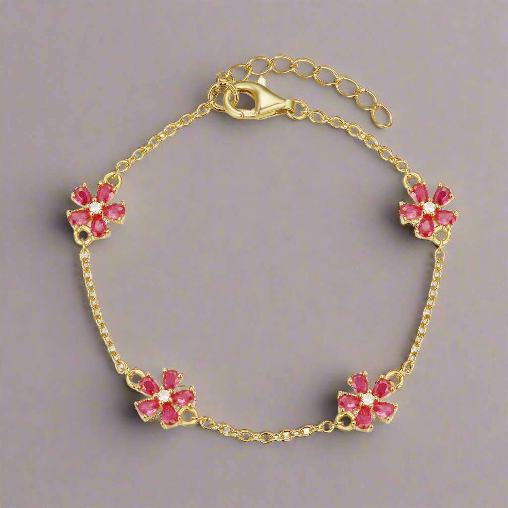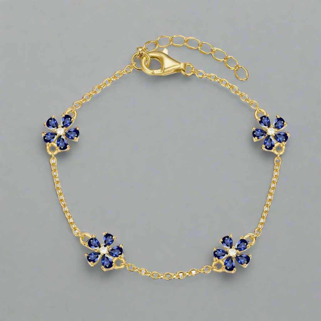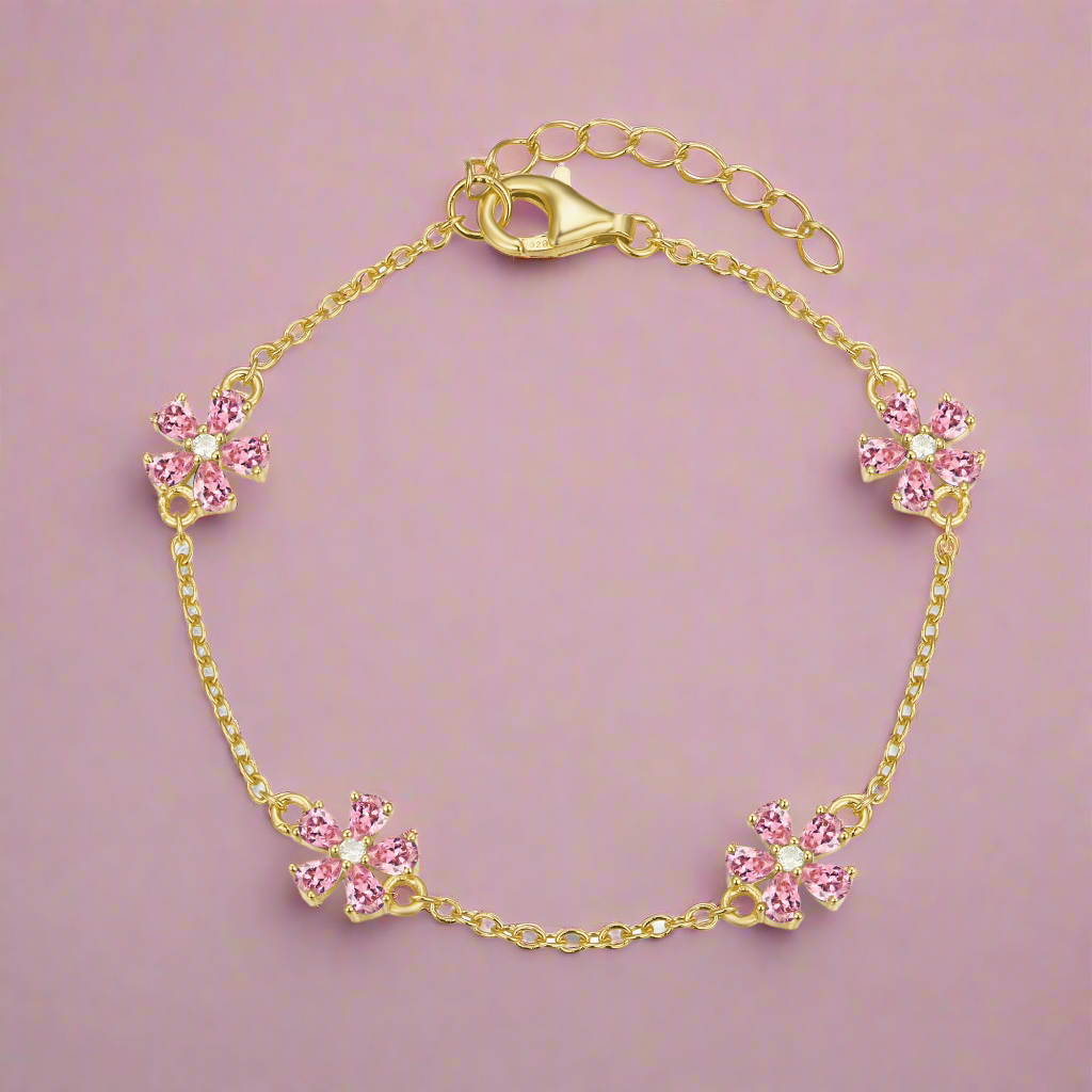 Sterling Silver Gold Plated CZ Flower Station Bracelet