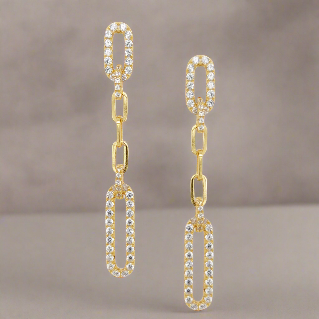 Invest in these Sterling Silver Gold Plated CZ Paperclip Earrings today, and take your style game to the next level. These earrings make for an unforgettable gift to your loved ones or a treat for yourself, and are sure to become a cherished addition to any jewelry collection. Don't miss out on this incredible opportunity to elevate your style and sophistication with these exquisite earrings. Order now and experience the epitome of luxury and style!