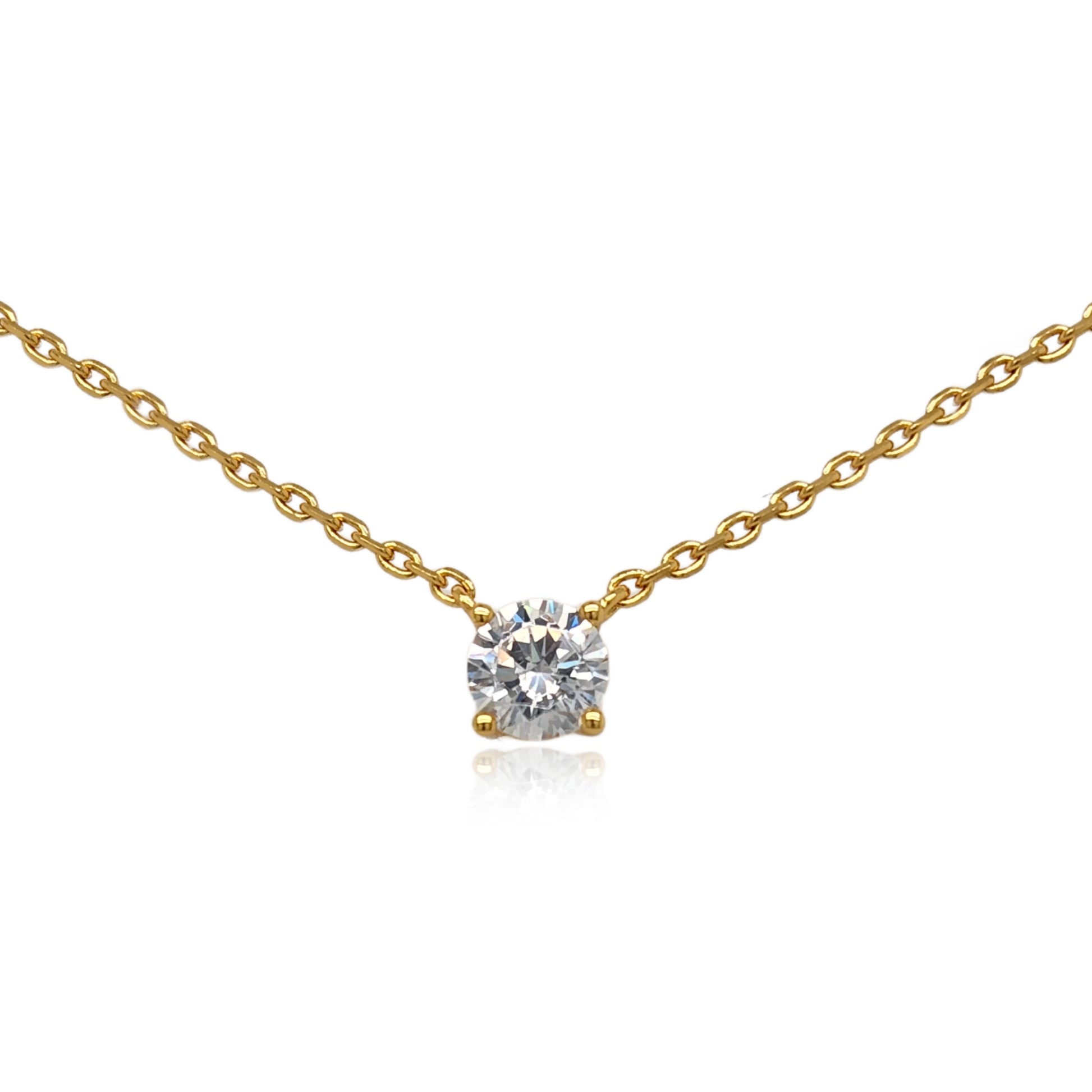 Sterling Silver Gold Plated CZ Solitaire Necklace