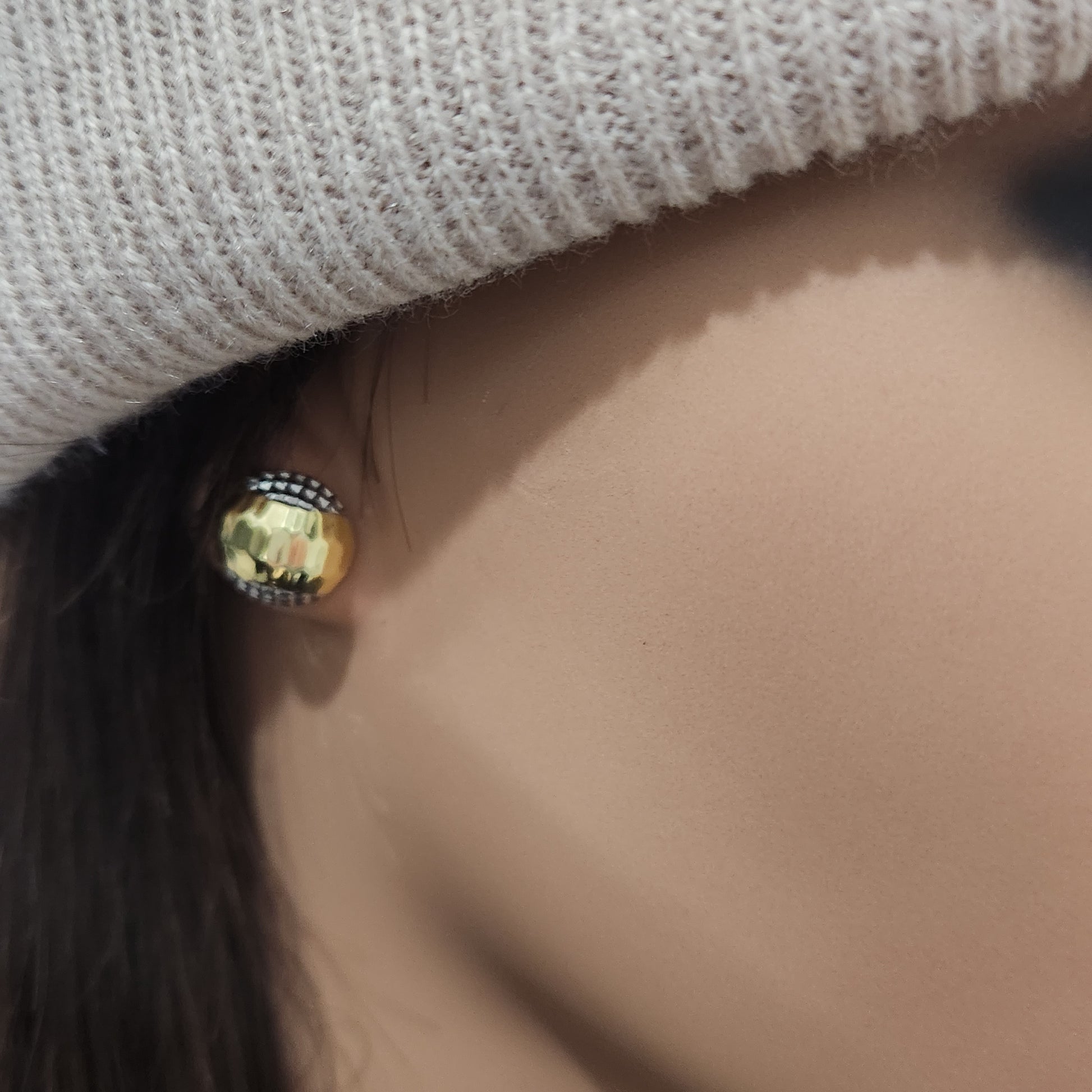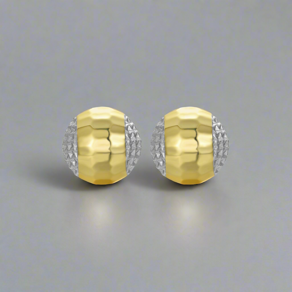 Add a touch of elegance and sparkle to your accessories with these beautifully crafted Sterling Silver Gold Plated Diamond Cut Circle Stud Earrings. Measuring at 12mm, these earrings feature a unique hammered design that adds texture and depth. Elevate any outfit with these stunning earrings that are sure to catch everyone's eye.