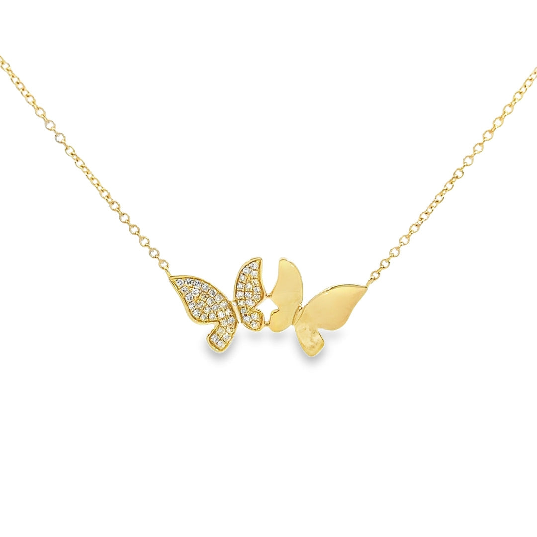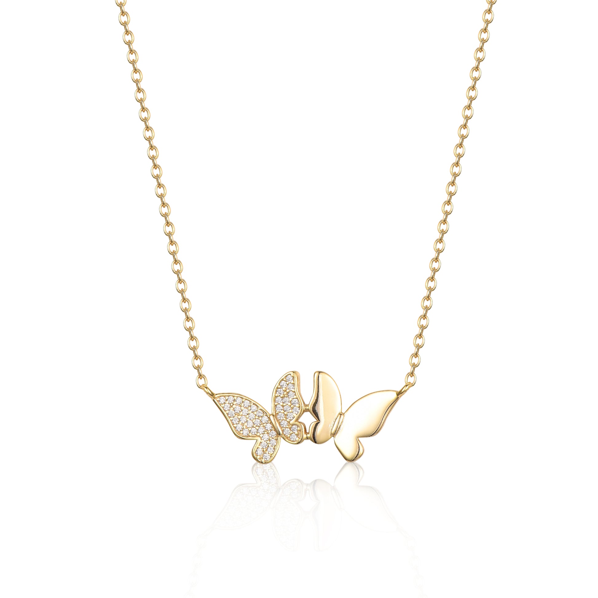 Sterling Silver Gold Plated Double Butterfly With CZ Necklace