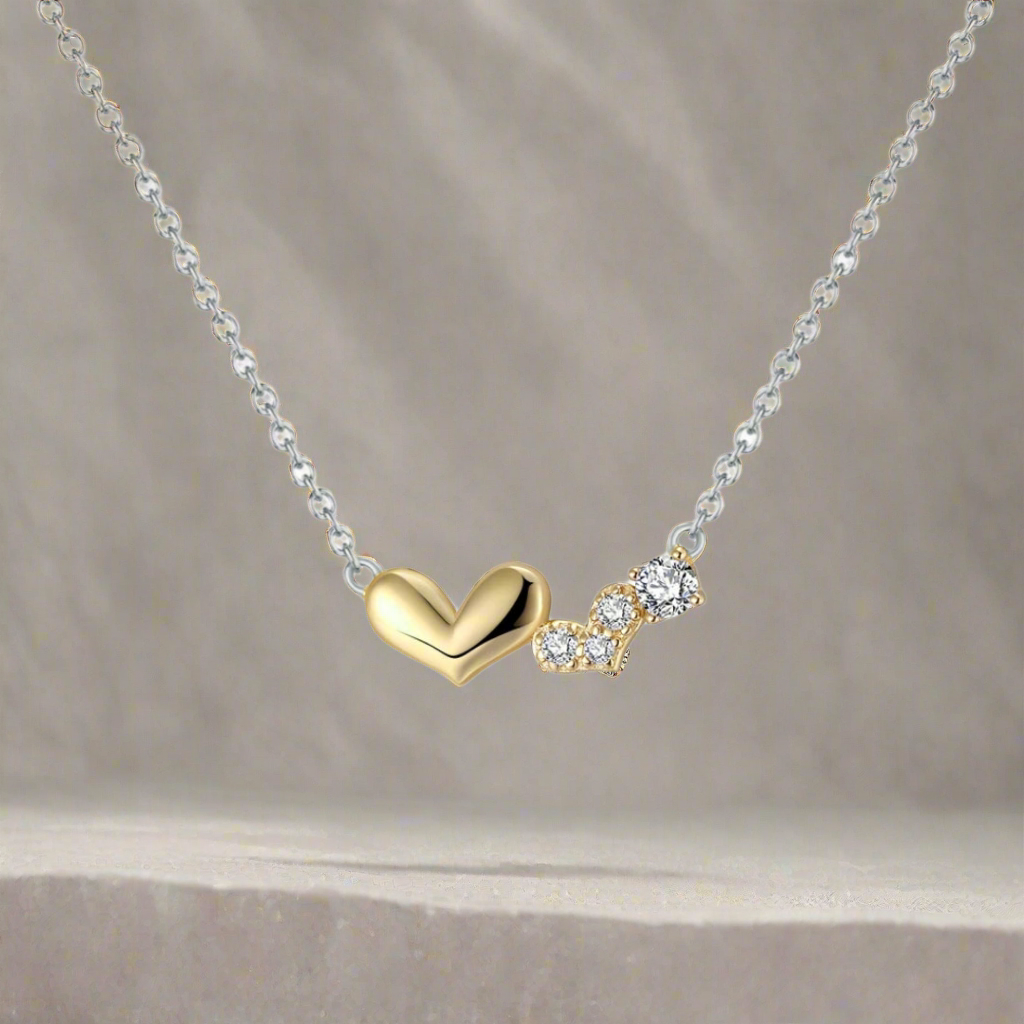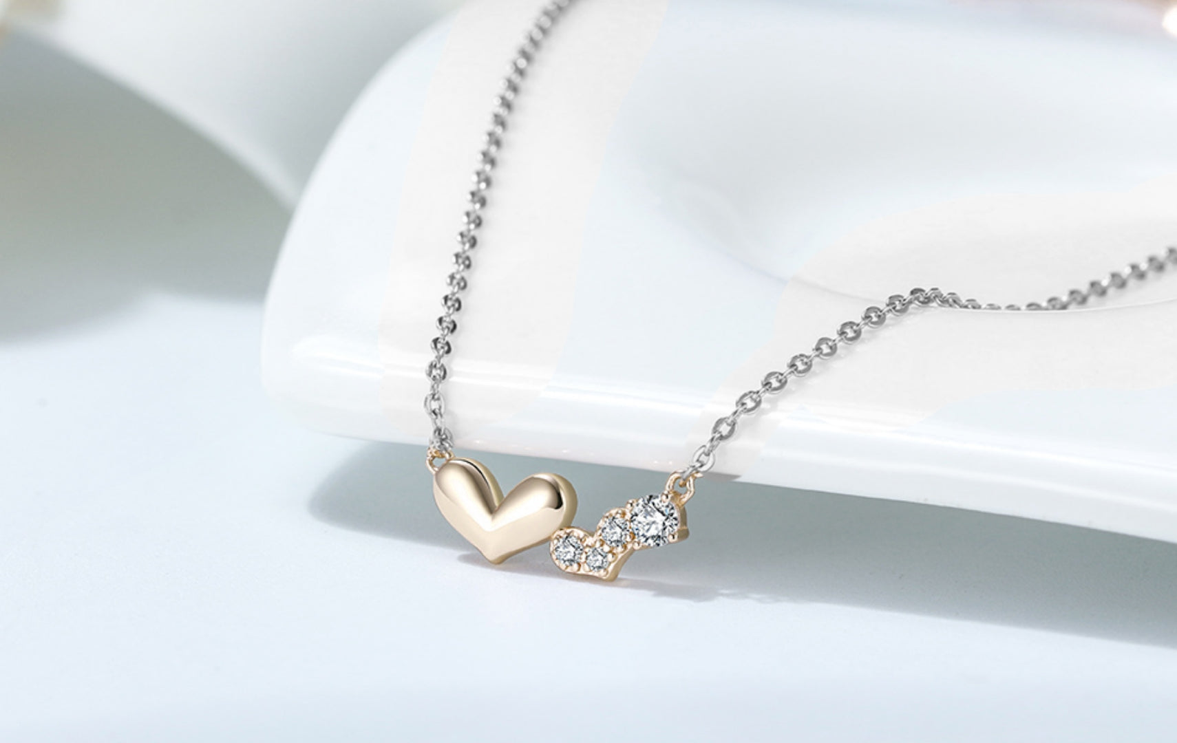 Sterling Silver Gold Plated Double Heart On Rhodium Chain Necklace
