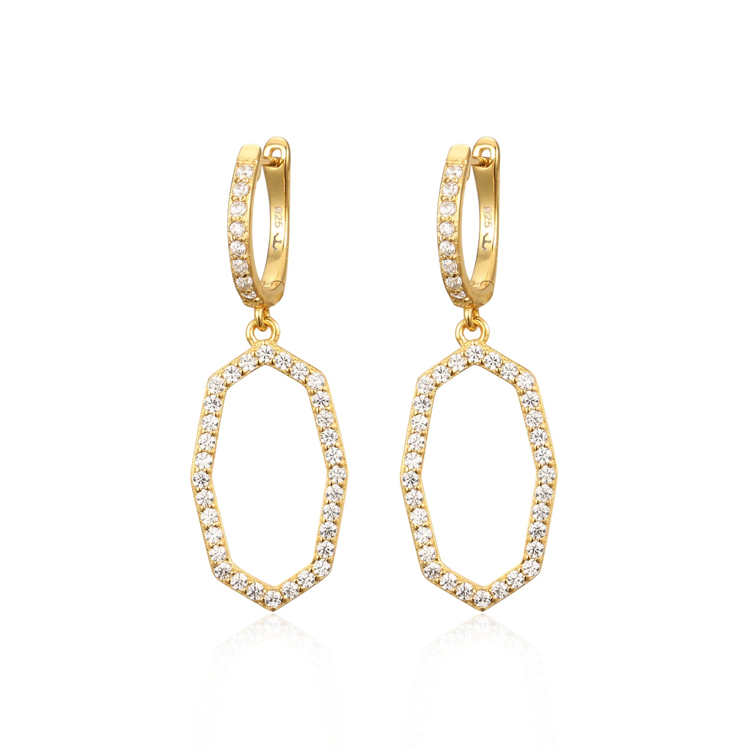 Sterling Silver Gold Plated Hexagon Shape Earring