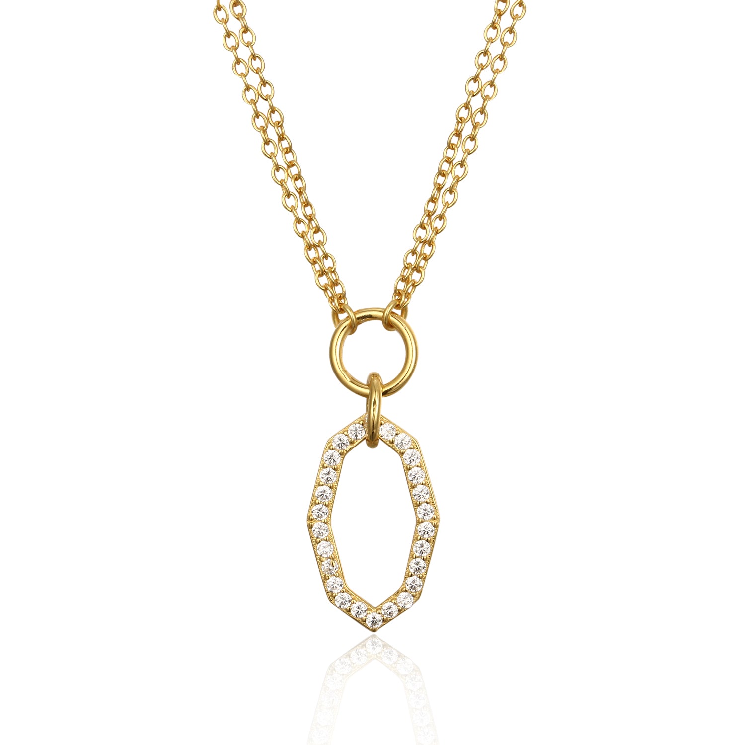 Sterling Silver Gold Plated Hexagon Shape on Double Chain Necklace