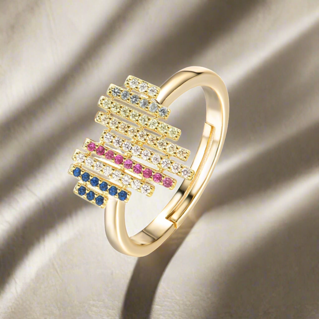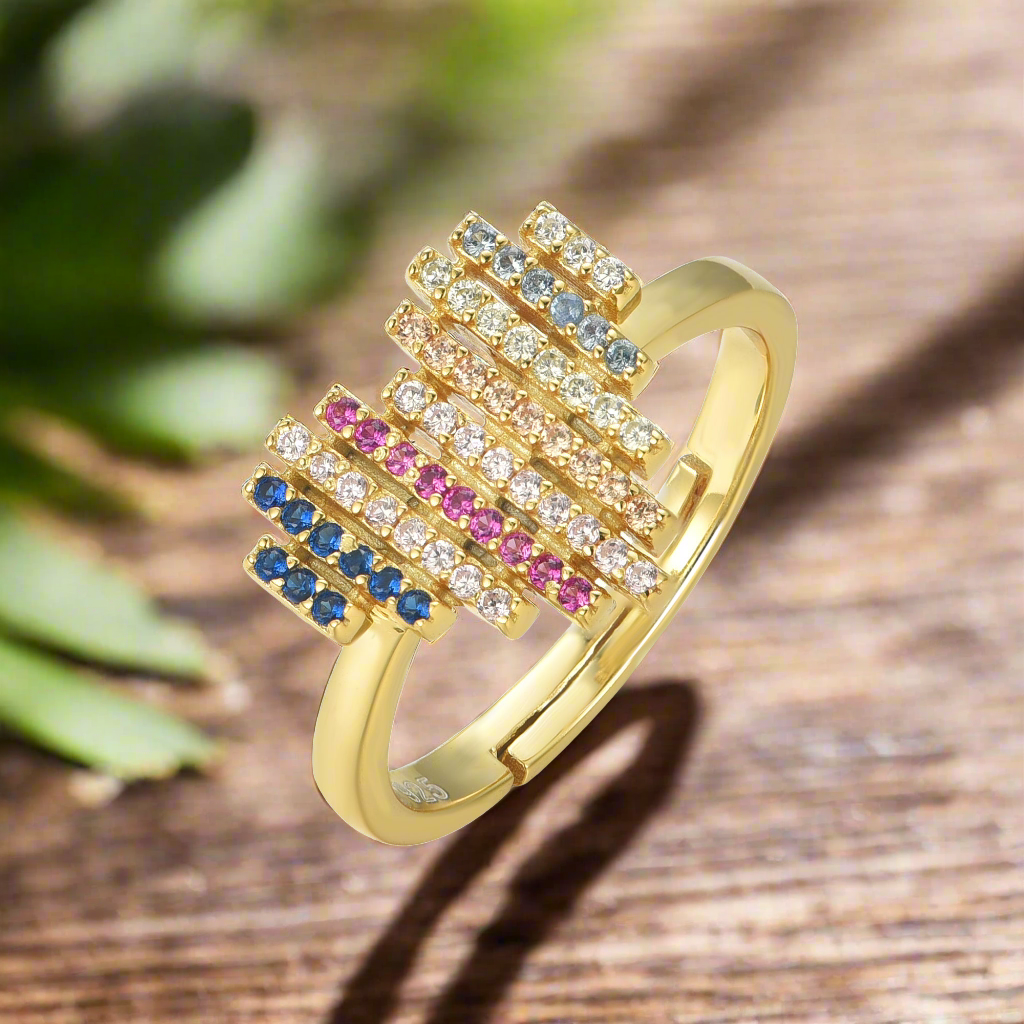 This stunning Sterling Silver Gold-Plated Multicolor Striped Heart Ring features a 13mm heart that can be adjusted to fit any finger. Fall in love with the bold colors and elegant design that will surely make a statement.