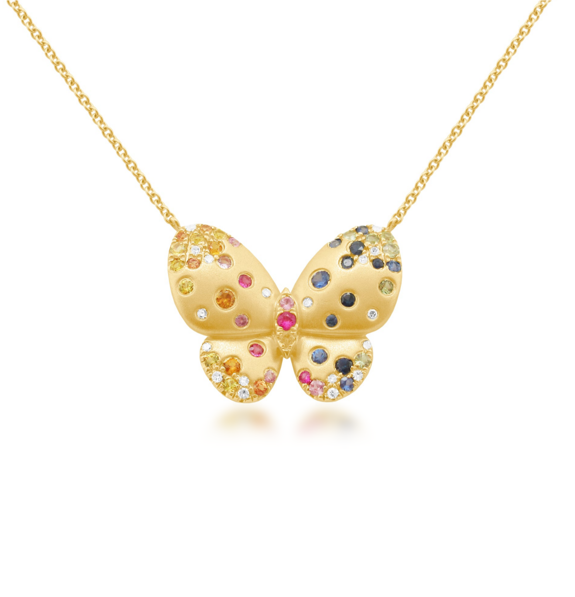 Sterling Silver Gold Plated Puffy Butterfly With Colorful CZ Necklace