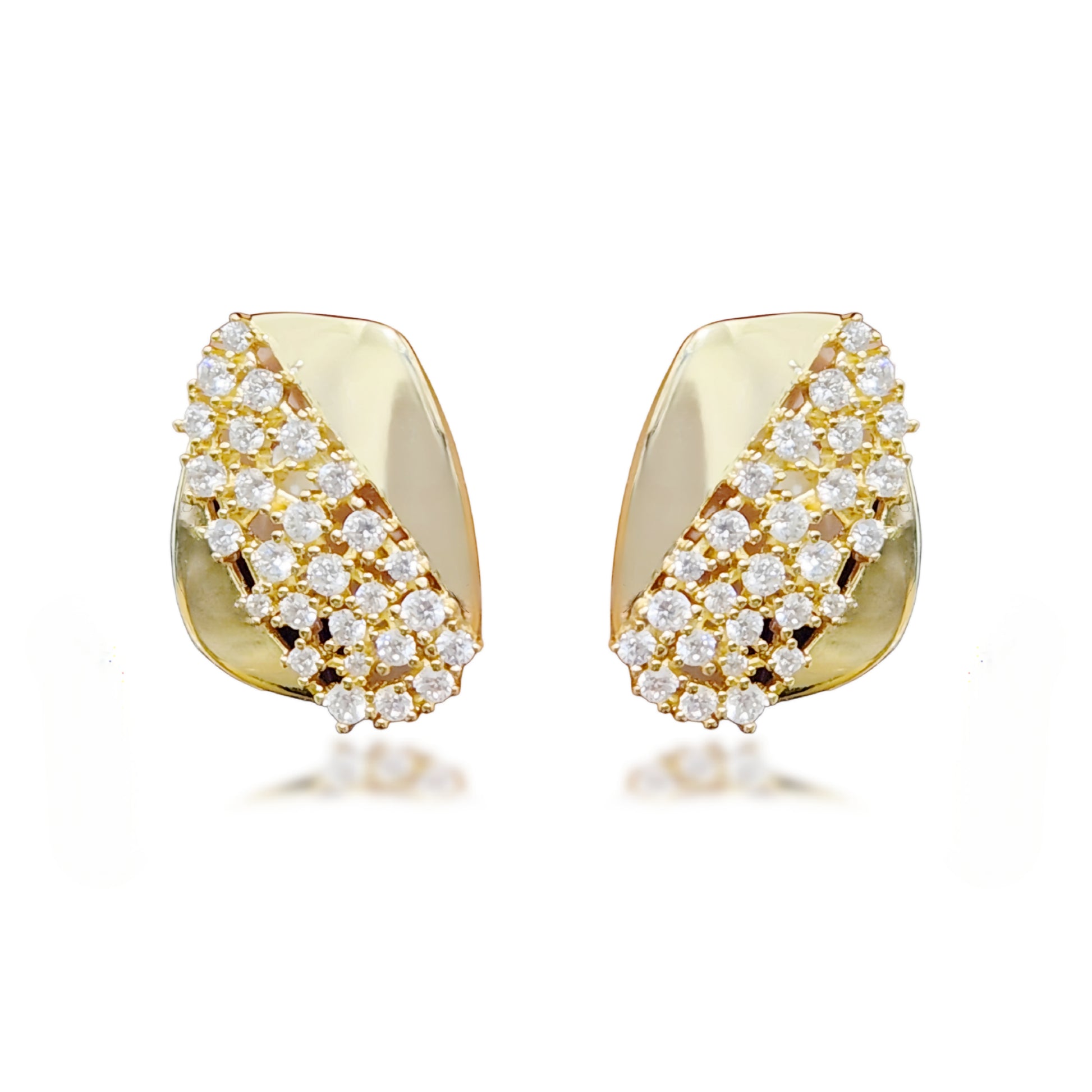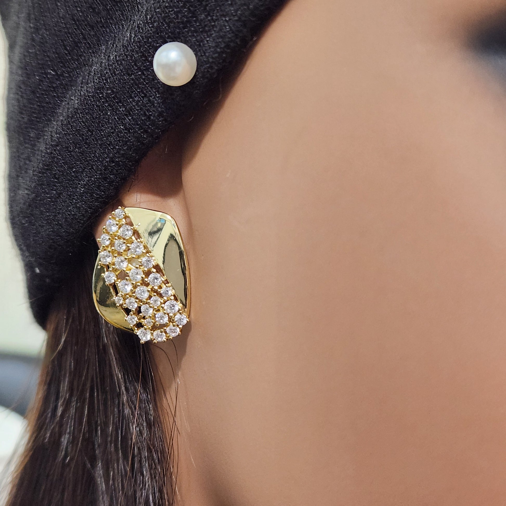 Sterling Silver Gold Plated Rectangular Shaped With CZ Stud Earrings