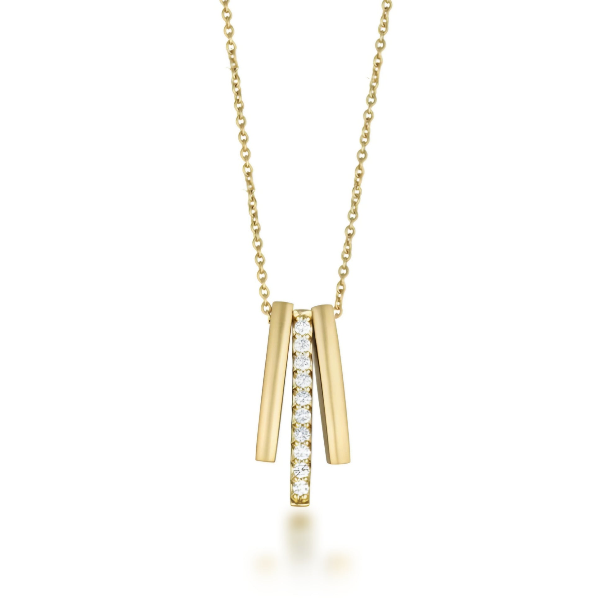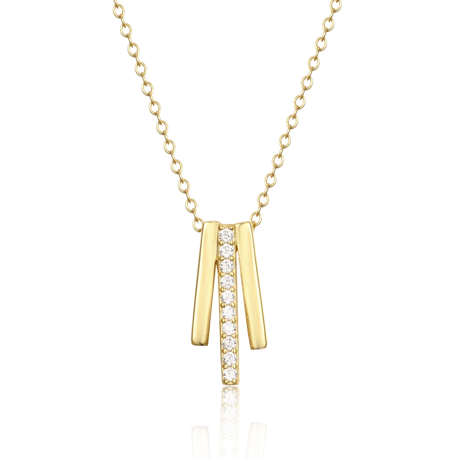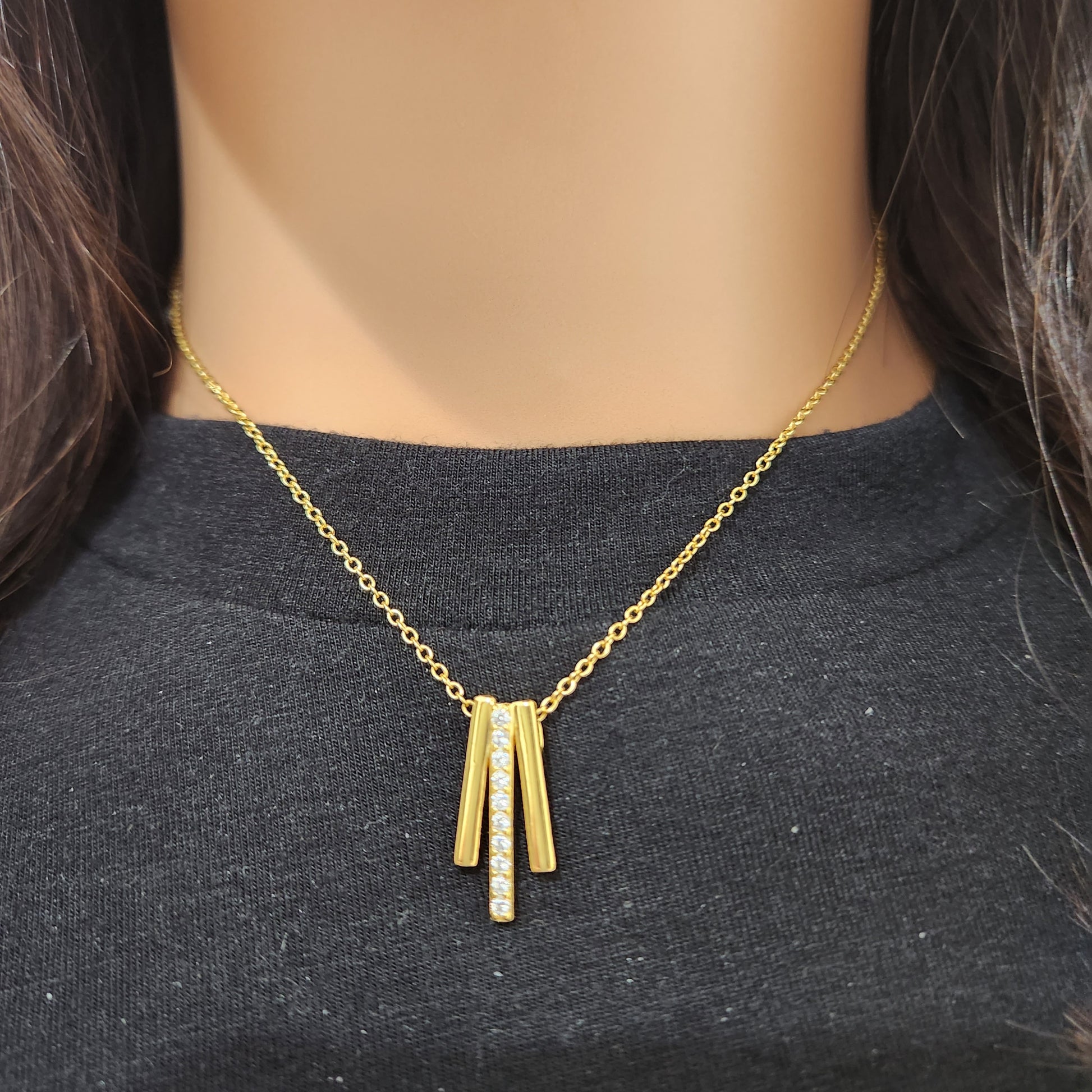 Sterling Silver Gold Plated Three Vertical Bar With CZ Necklace