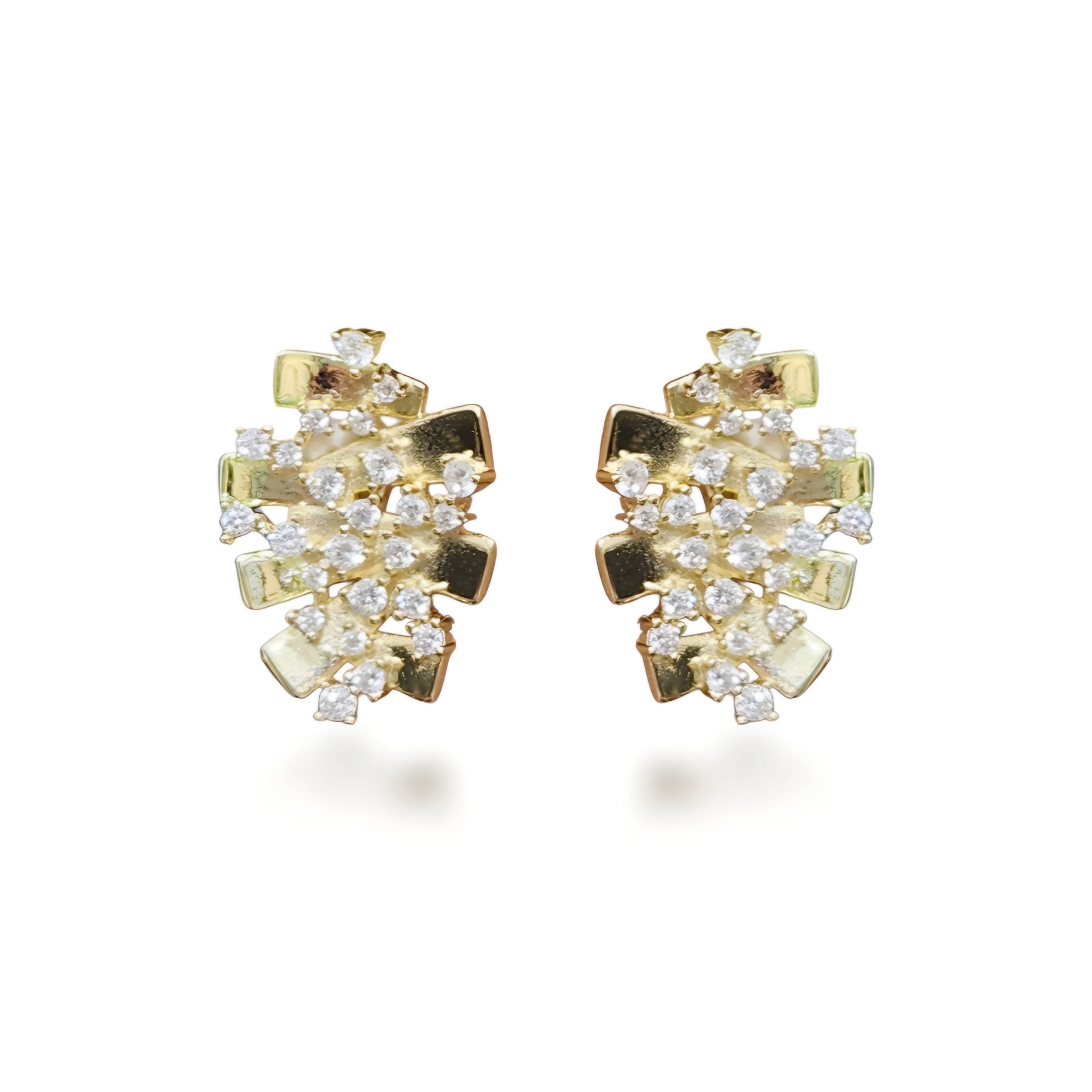 Sterling Silver Gold Plated Wave Sprinkled CZ Stud Earrings
