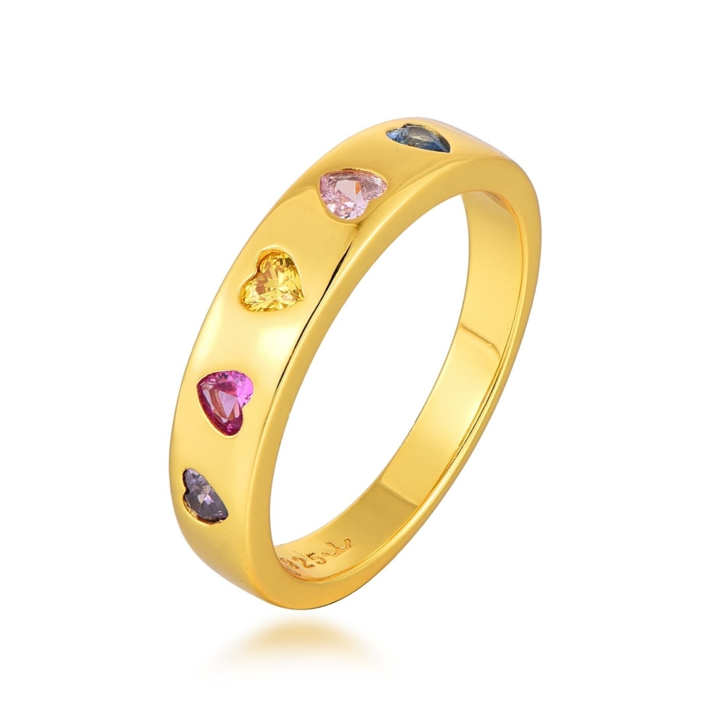 Sterling Silver Inlaid Colorful CZ Heart Ring