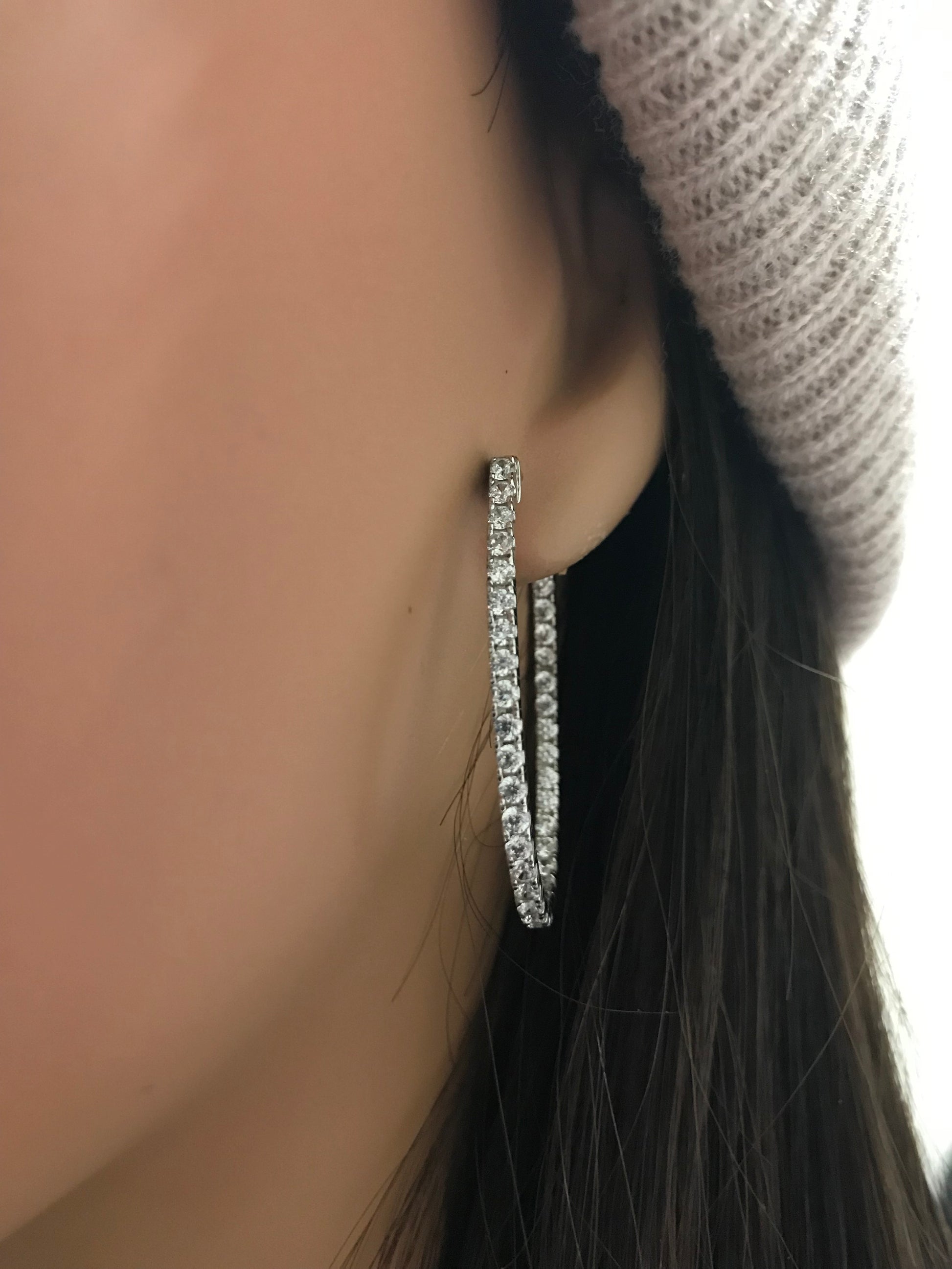 Sterling Silver Inside Out Teardrop Shaped CZ Hoop Earrings
