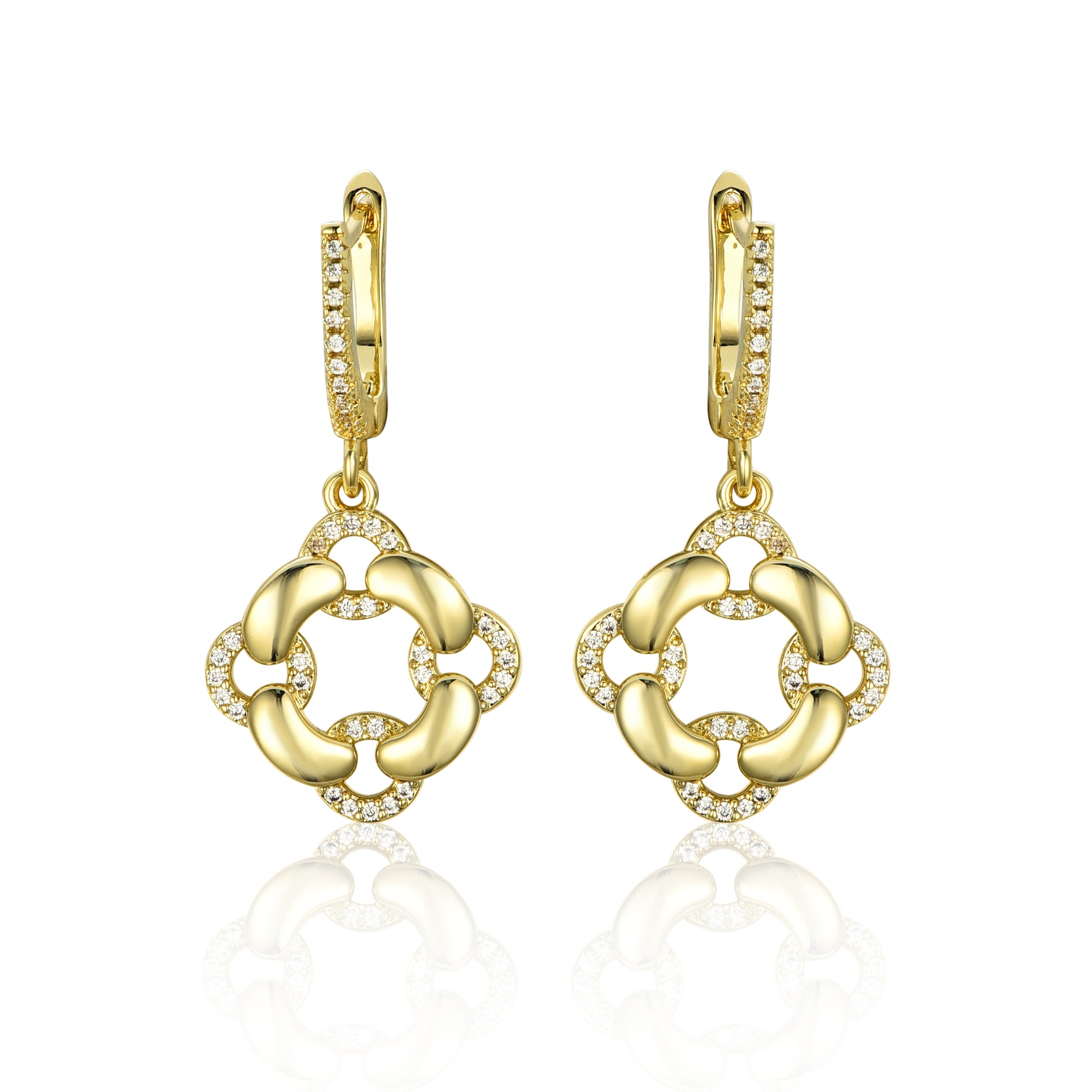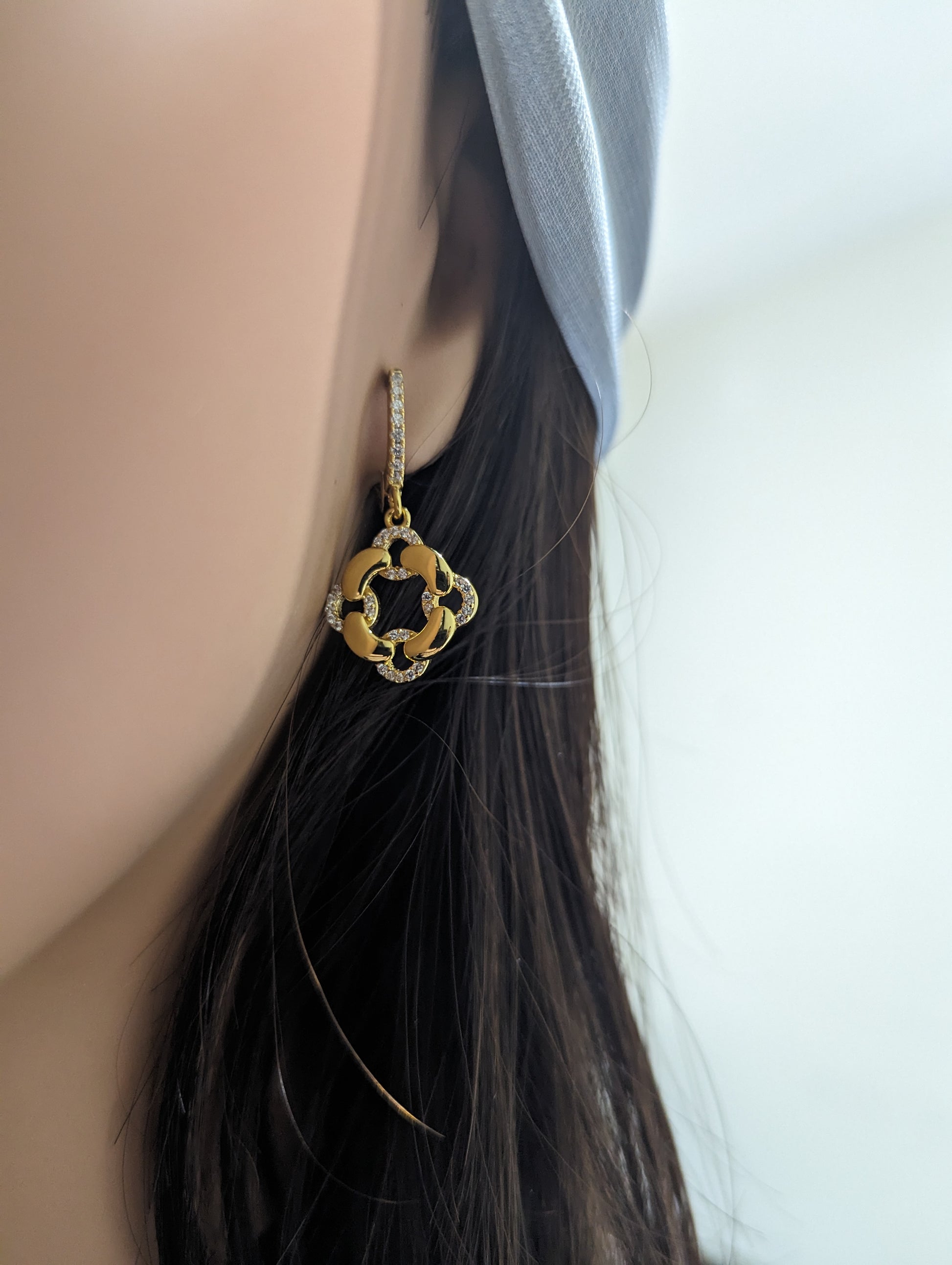 This exquisite pair of earrings is crafted from sterling silver and is adorned with shimmering CZ stones. Boasting an interlocking circle design, each earring is plated in either gold or rhodium for a luxurious finish. Measuring 1.25'' in length, these earrings offer an air of sophistication and style. These earrings embody the perfect balance of elegance and sophistication. Featuring an interlocking circle design, the sparkling CZ stones and sterling silver material give this timeless pair a regal, luxurious finish. Make a style statement with this exquisite pair of earrings that measure 1.25'' in length.