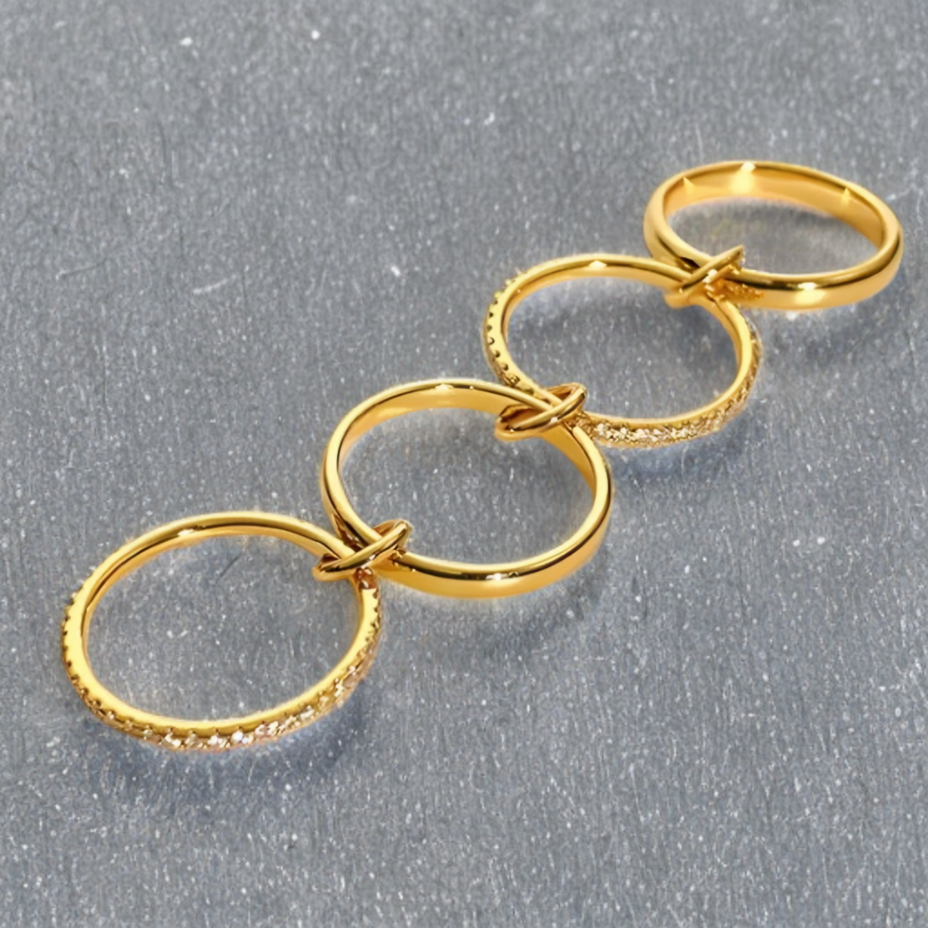 Sterling Silver Interlocking Stacked 4 Ring Set