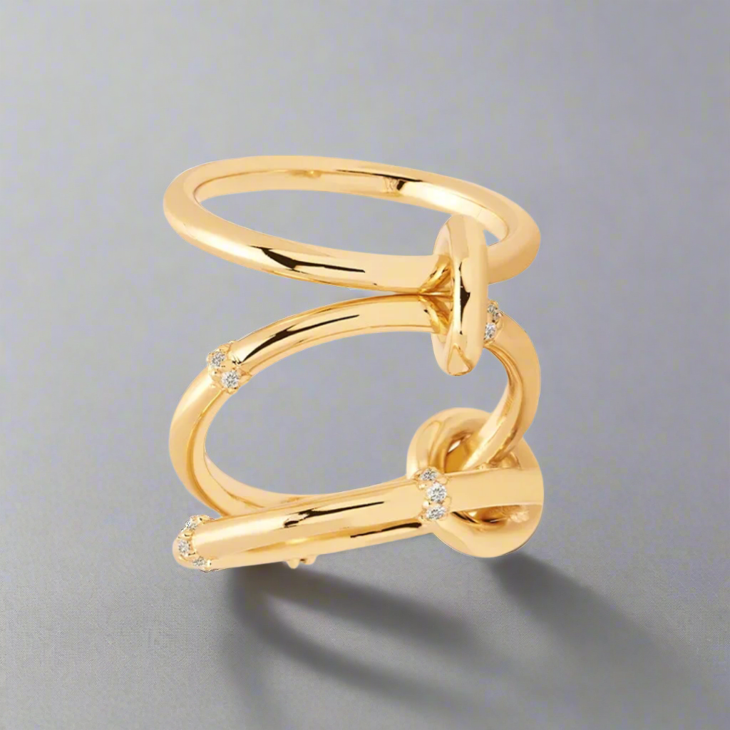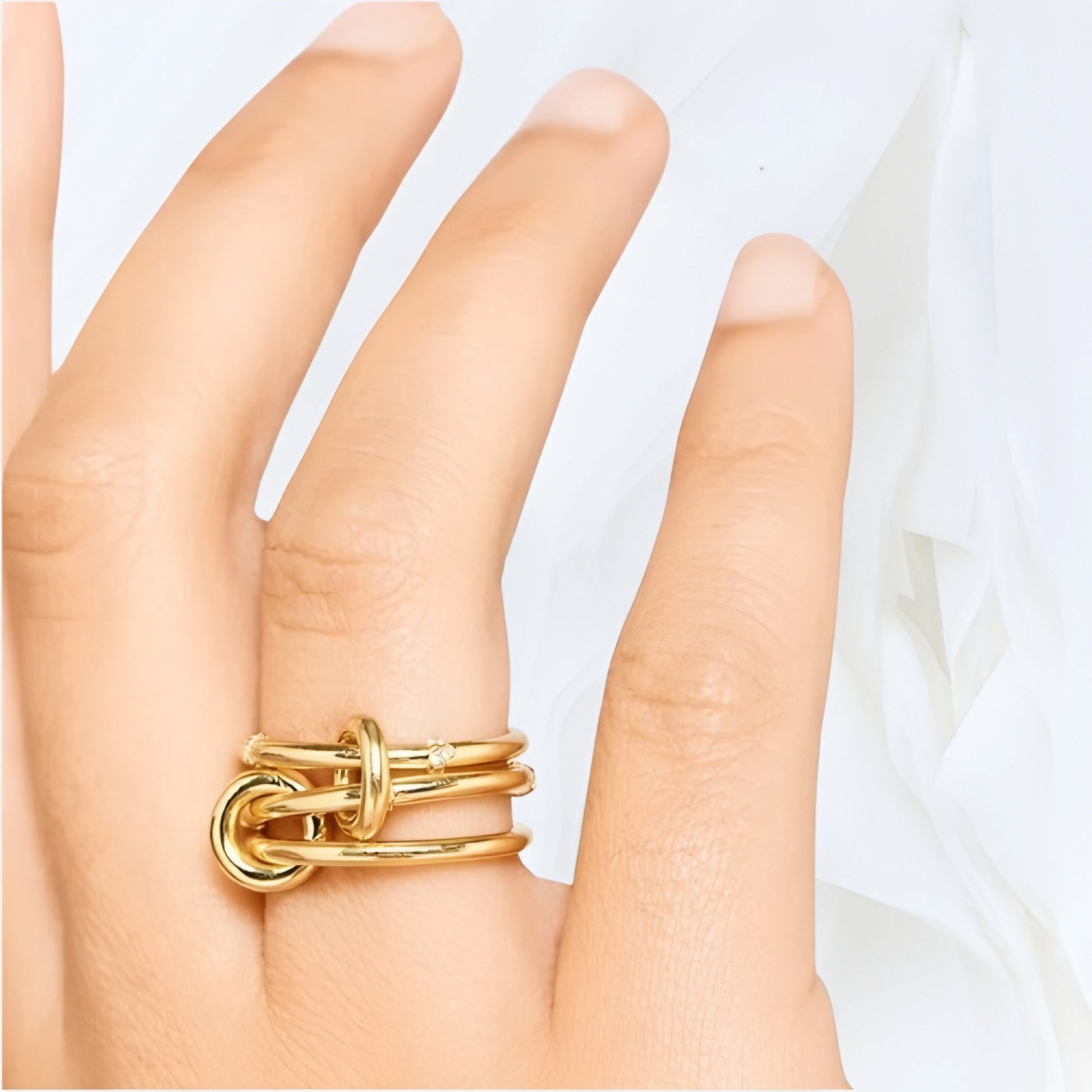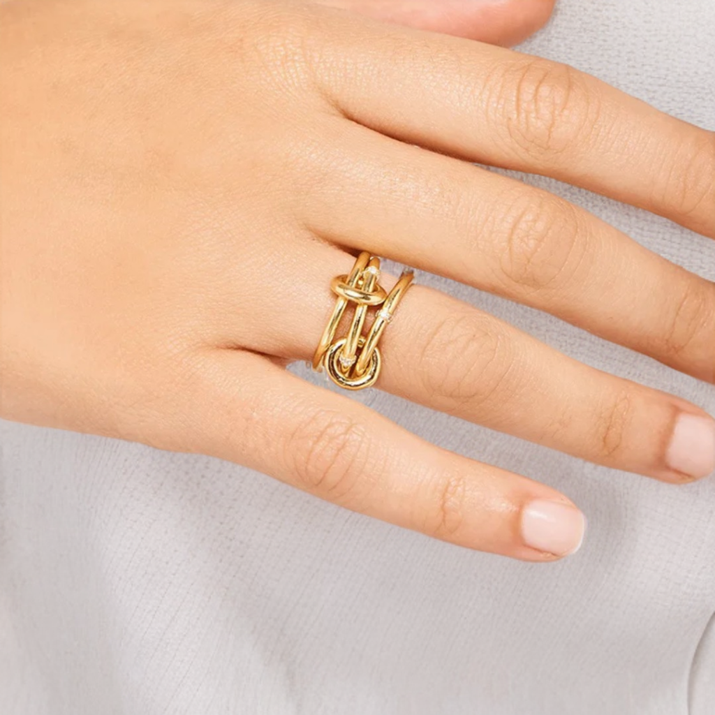 Elevate your style with this multi-layered sterling silver ring set, available in 14k gold or rhodium plating, is adorned with sparkling cubic zirconia bands for a touch of glamour. The interlinked design adds a modern twist to any outfit, making it the perfect statement piece for any occasion.