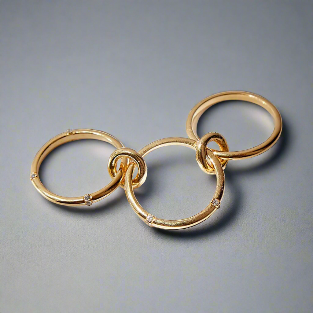 Sterling Silver Interlocking Stacked Ring Set with Studded Rondelles