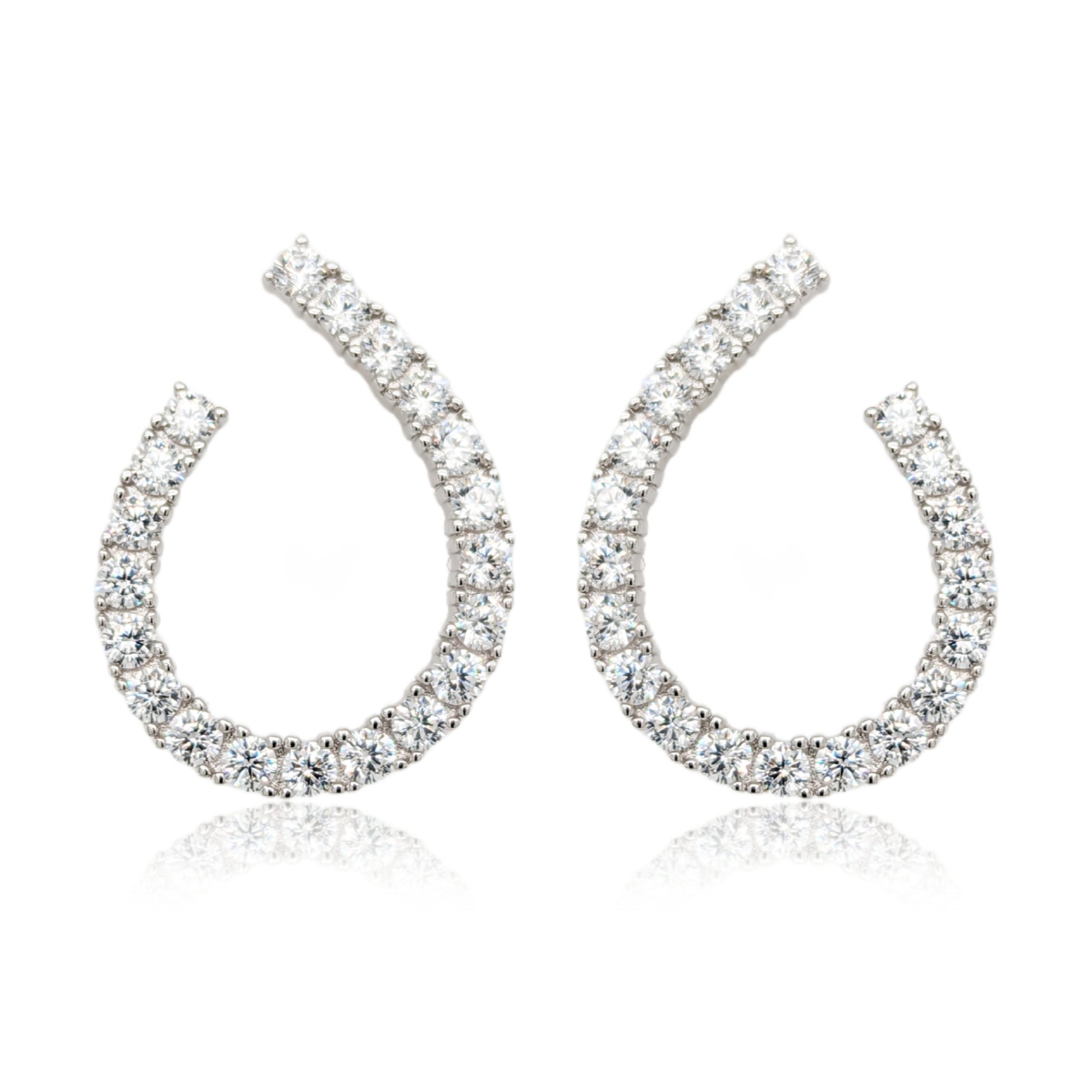 Exquisitely crafted from lustrous Rhodium-Plated Sterling Silver, these 'J' CZ Tennis Earrings on Post make a magnificent statement at one inch in graceful length. Perfectly balanced between graceful finesse and eye-catching sparkle, these timeless beauties will ensure you always look your finest.