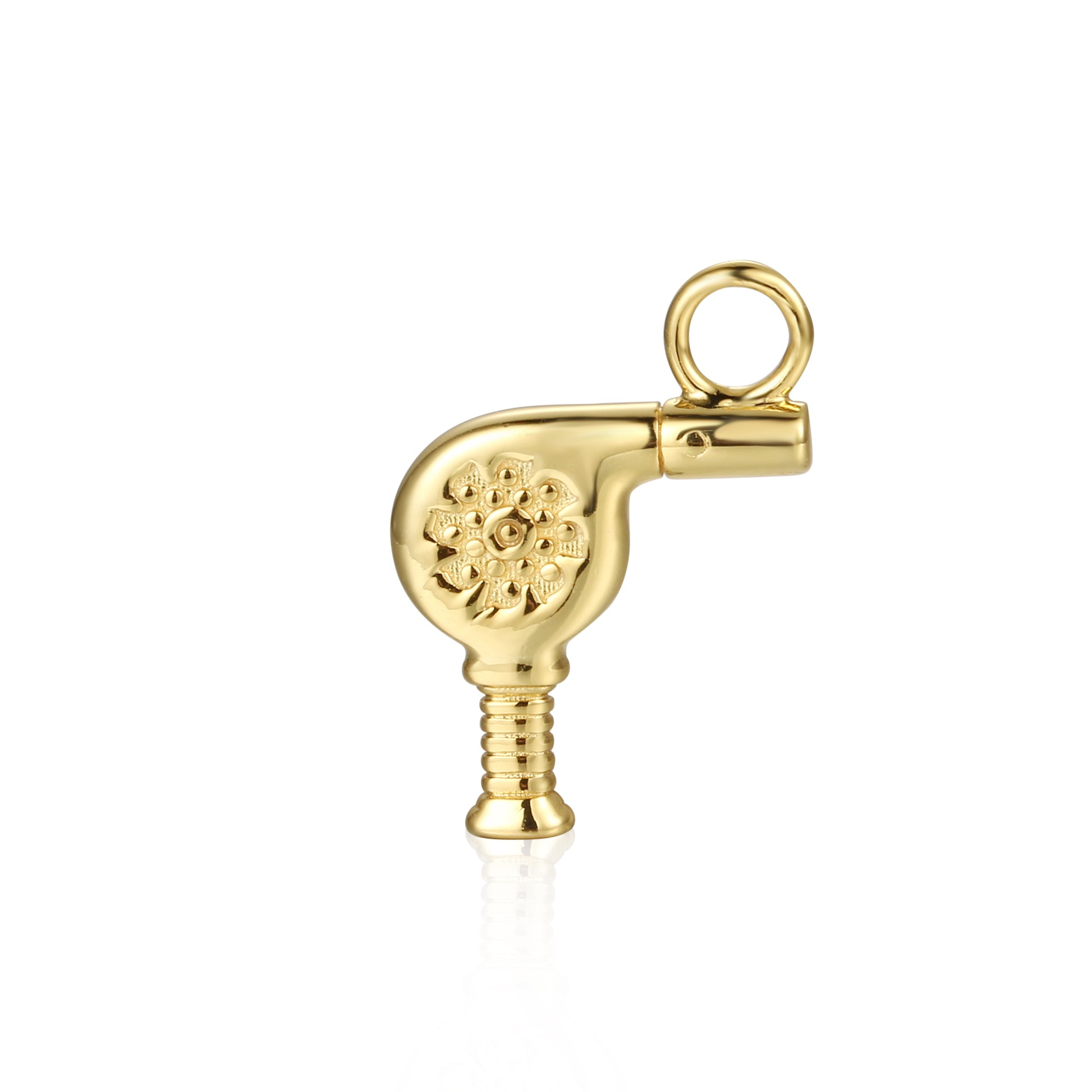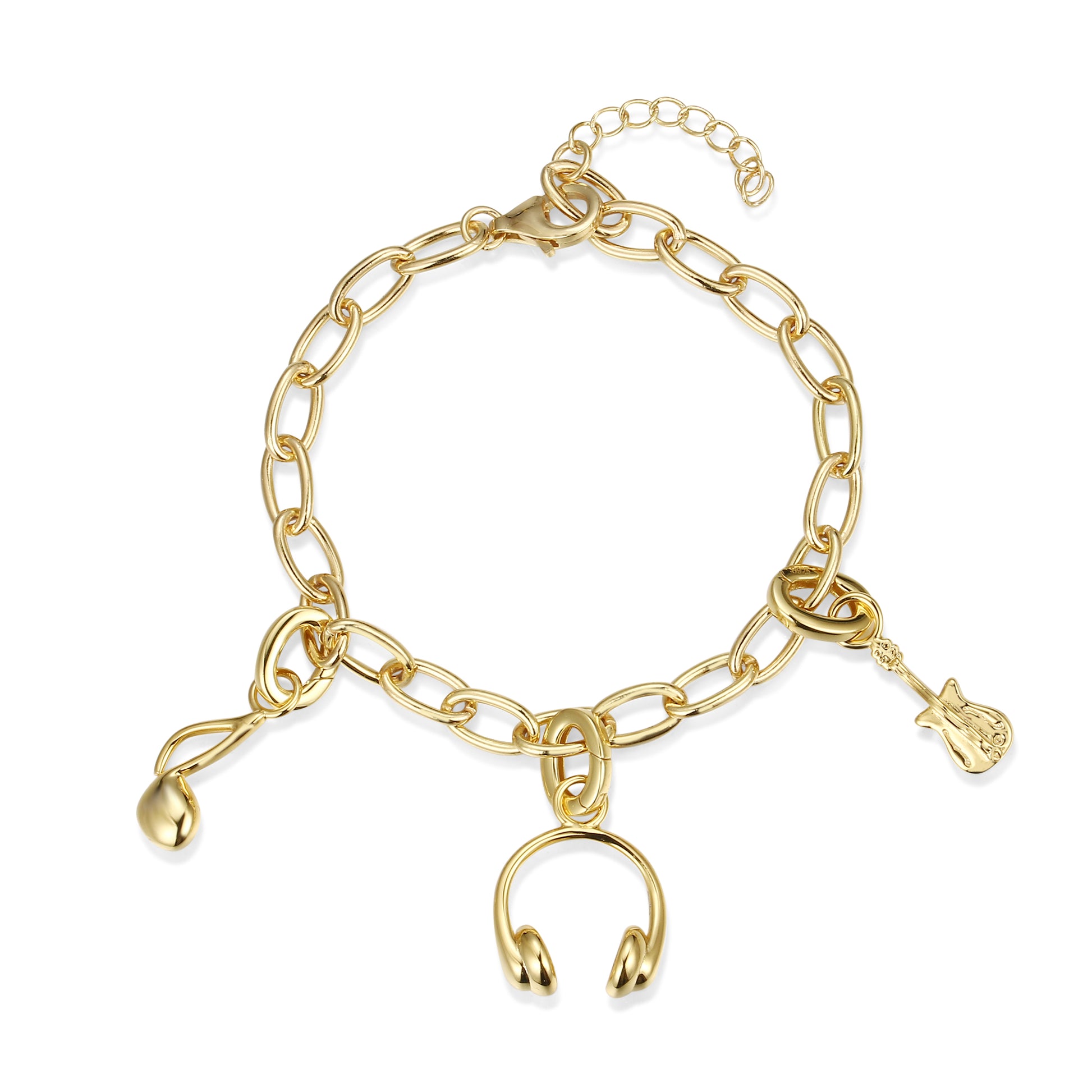Upgrade your charm collection with these stunning sterling silver Link It charms. Featuring a golden micron-plated or rhodium-plated design, these charms are the perfect addition to showcase your passions and style. Choose from a variety of options including a blowdryer, briefcase, camera, cell phone, gift box, guitar, headphones, heart, microphone, music notes, palette, piano, pocketbook, and suitcase. Elevate your look and add a touch of elegance to any outfit with these exquisite charms.