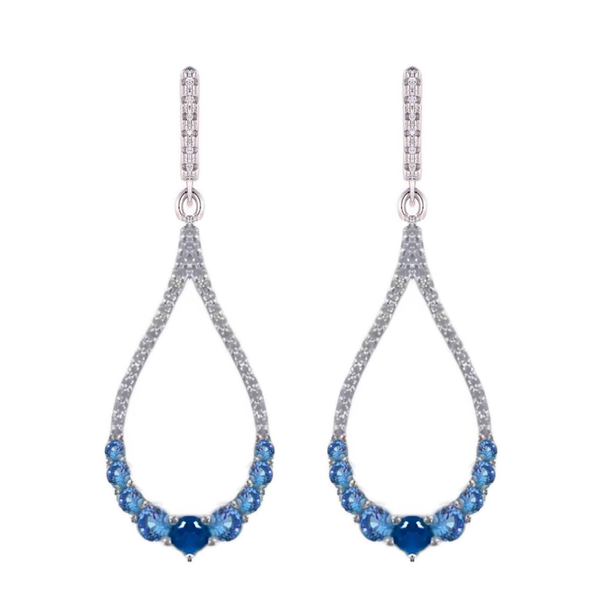 Sterling Silver Micro Pave and Color Stone Teardrop Shape Earring
