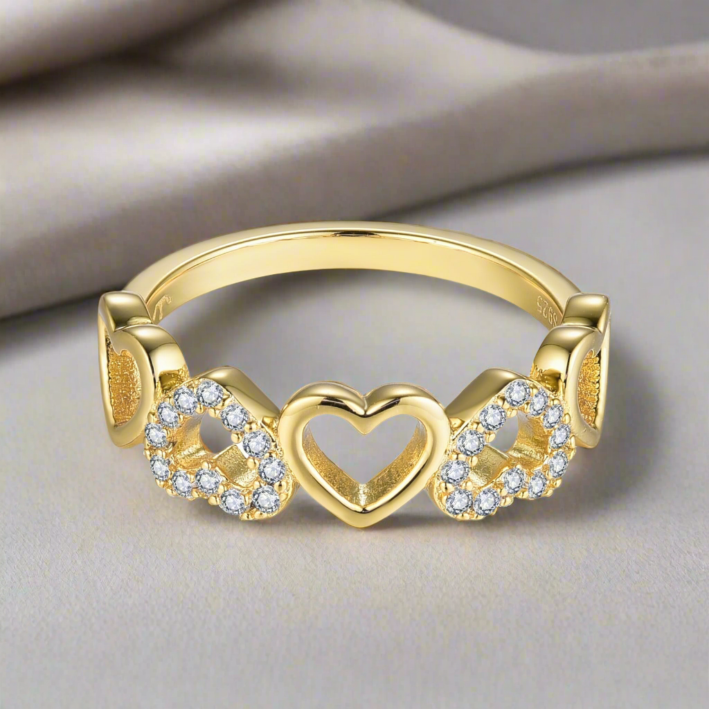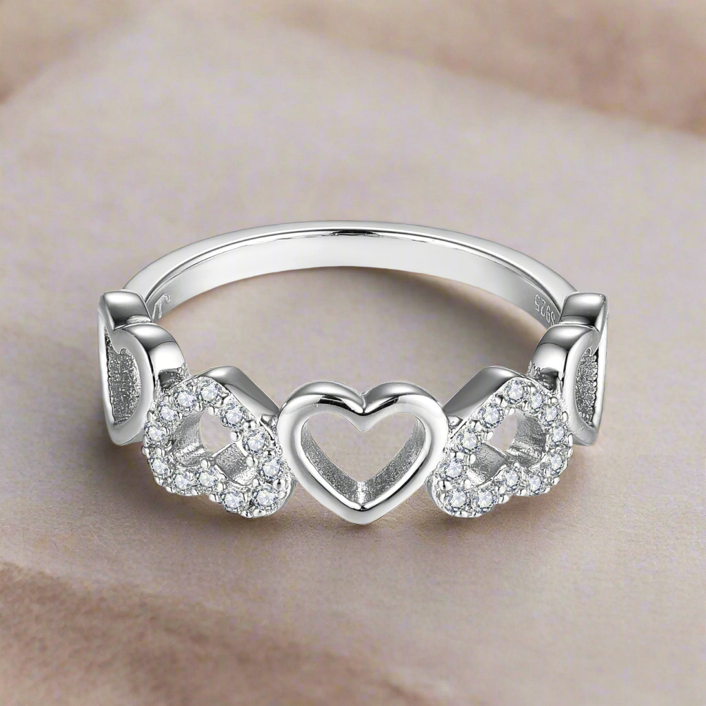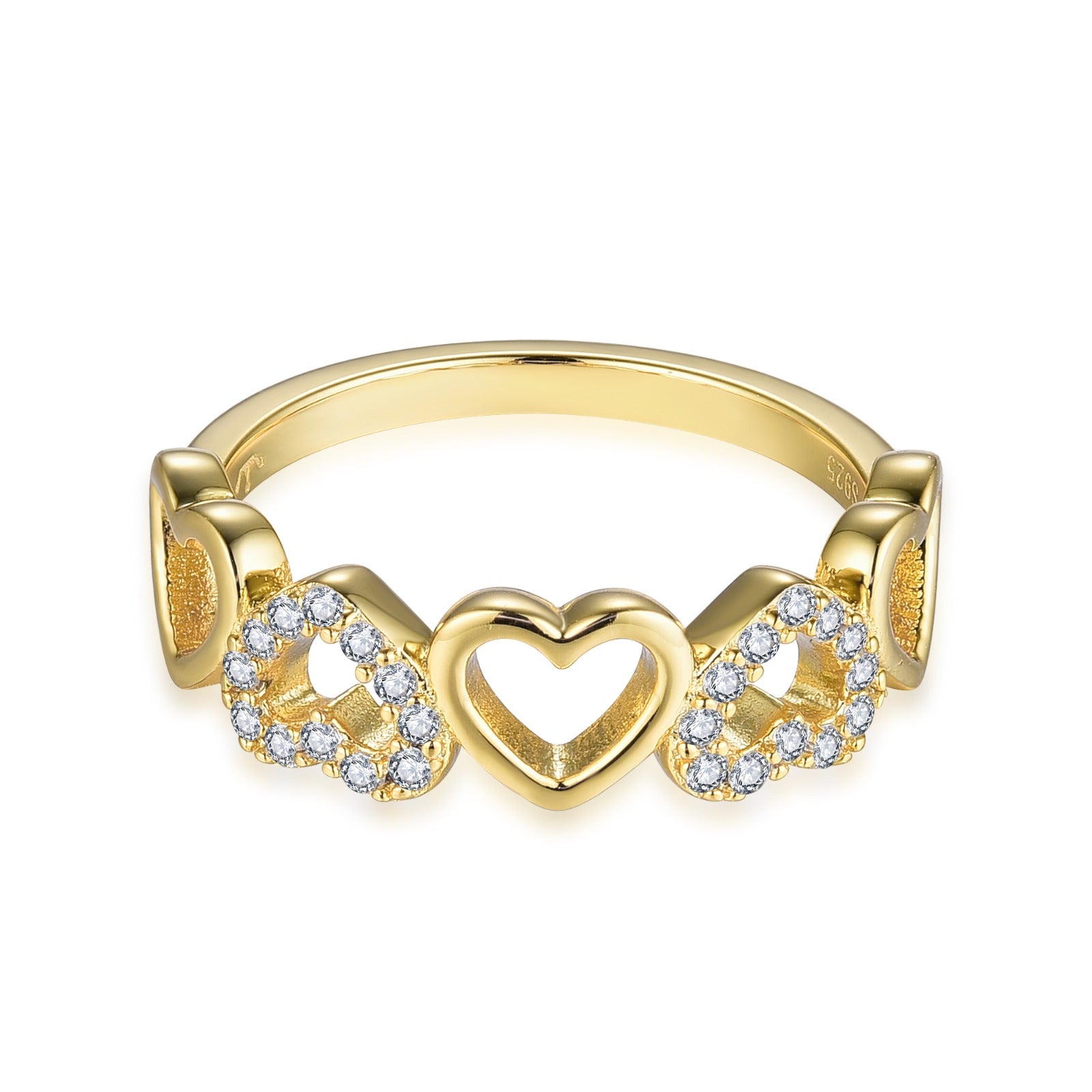 Our Sterling Silver Micropave and Solid Hearts Ring features a gold or rhodium plating that adds an extra touch of luxury. The sparkling cubic zirconia stones arranged in a micropave setting, combined with the solid heart details, make this ring a playful yet elegant accessory that promises to bring lasting brightness to any day. Perfect as a gift or self-purchase, get yours today and experience true timeless beauty!