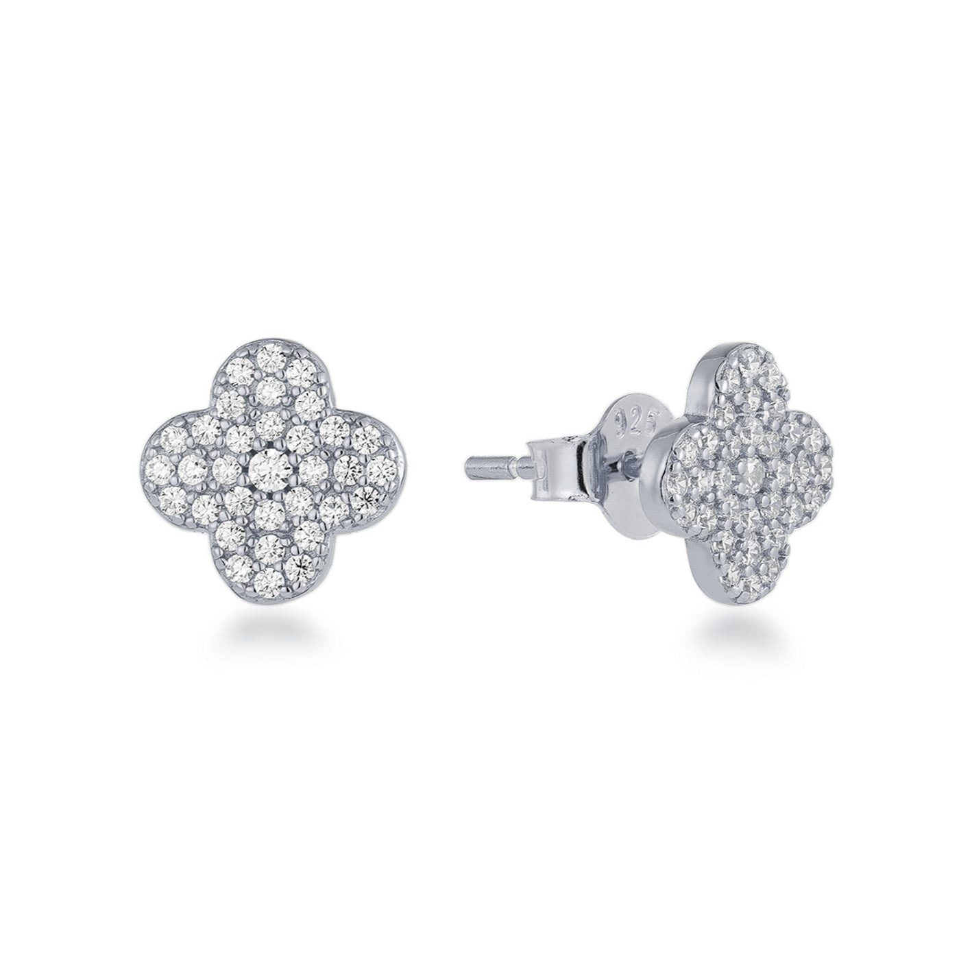 Experience true luxury with our Sterling Silver Micropave Clover Stud Earrings, now available in both rhodium and gold plating options.