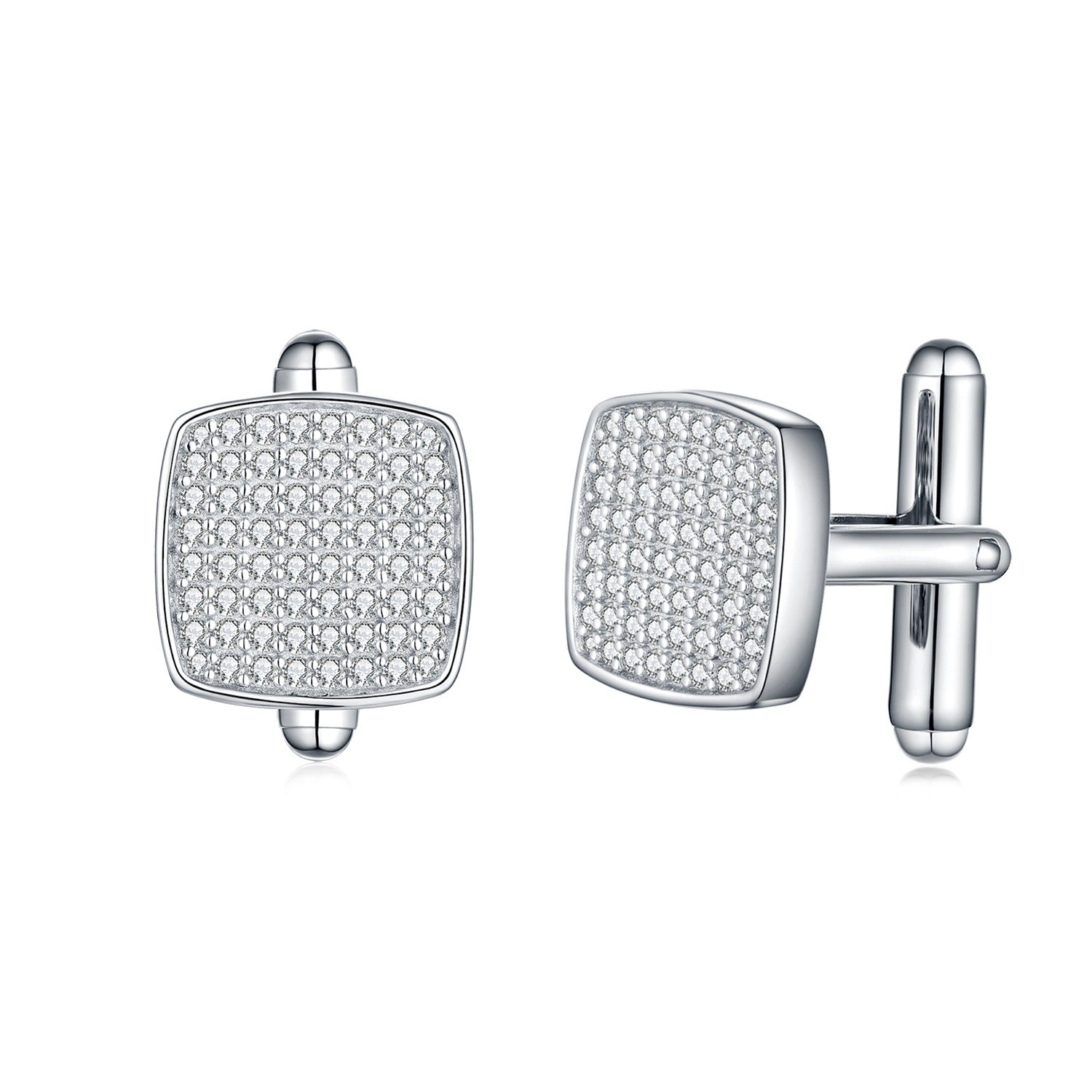 Sterling Silver Micropave CZ Cushion Square Shape Cufflinks