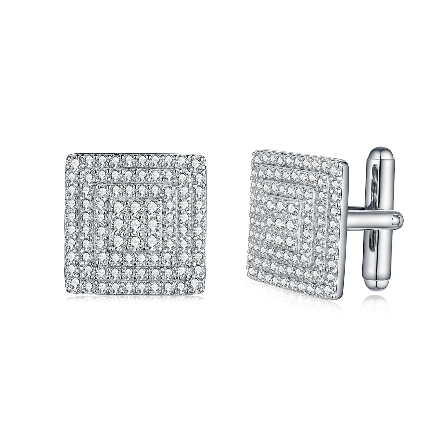 Rhodium Plated Sterling Silver Micropave CZ Square Cufflinks