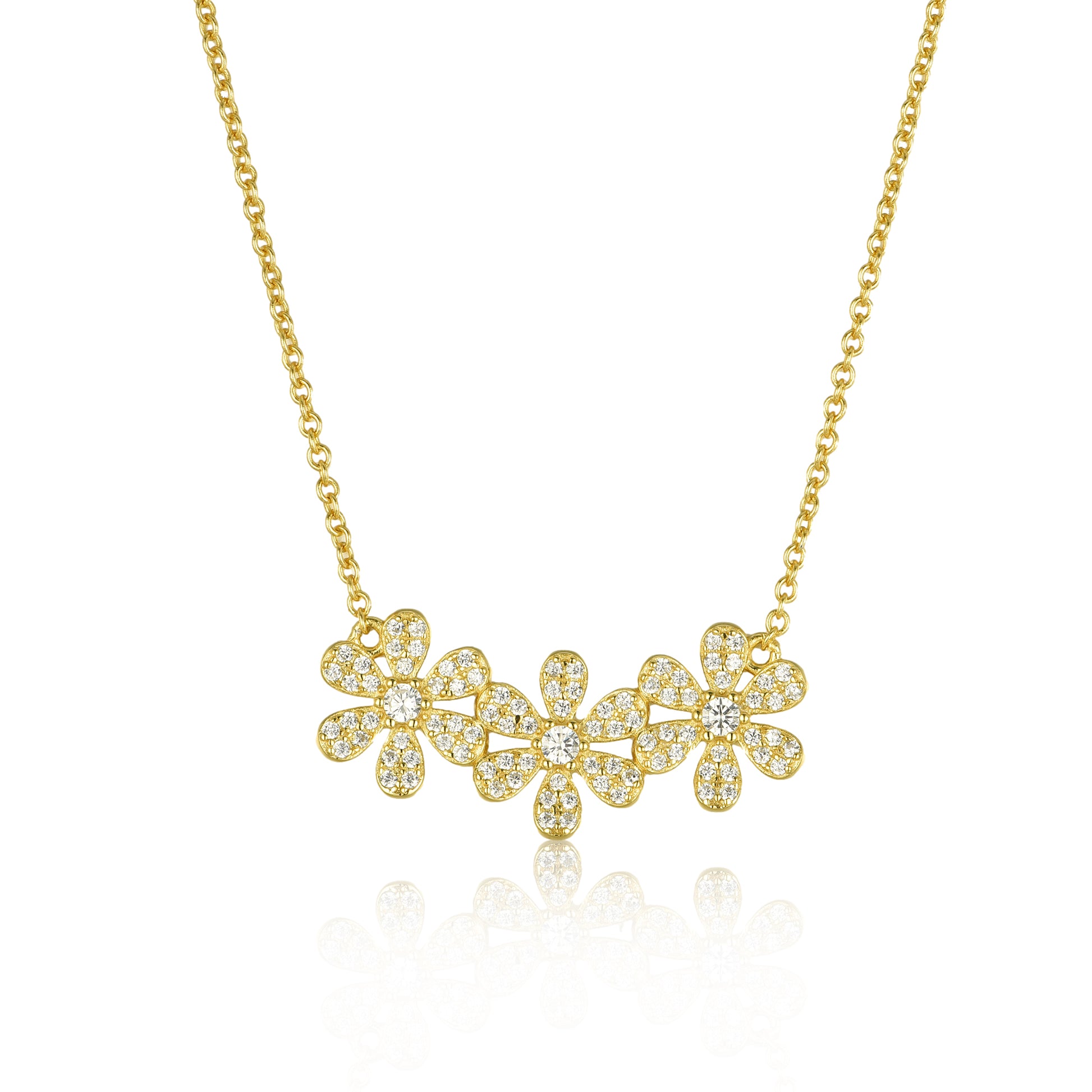 Sterling Silver Micropave CZ Triple Flower Necklace
