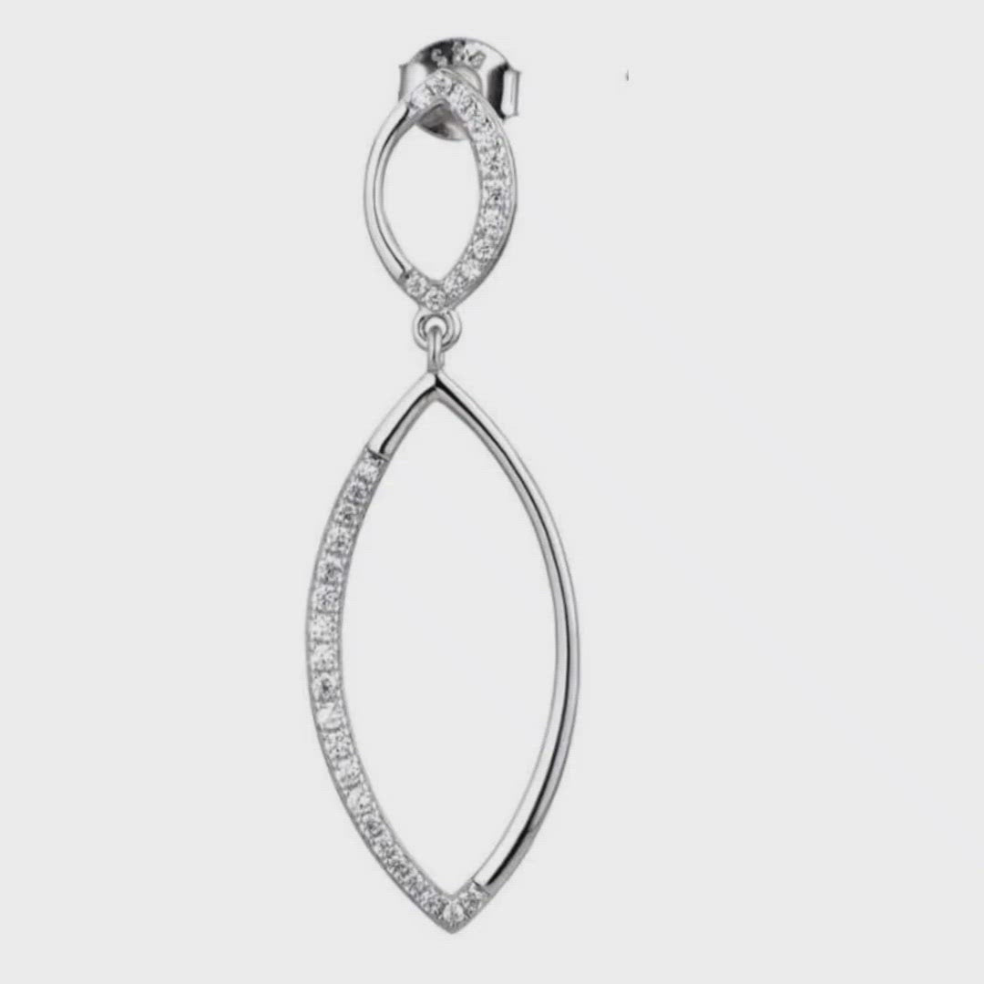 Rhodium Plated Sterling Silver Micropave Double Marquis Shape Earring