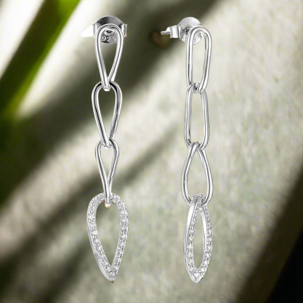 Sterling Silver Micropave Four Teardrop Link Earring