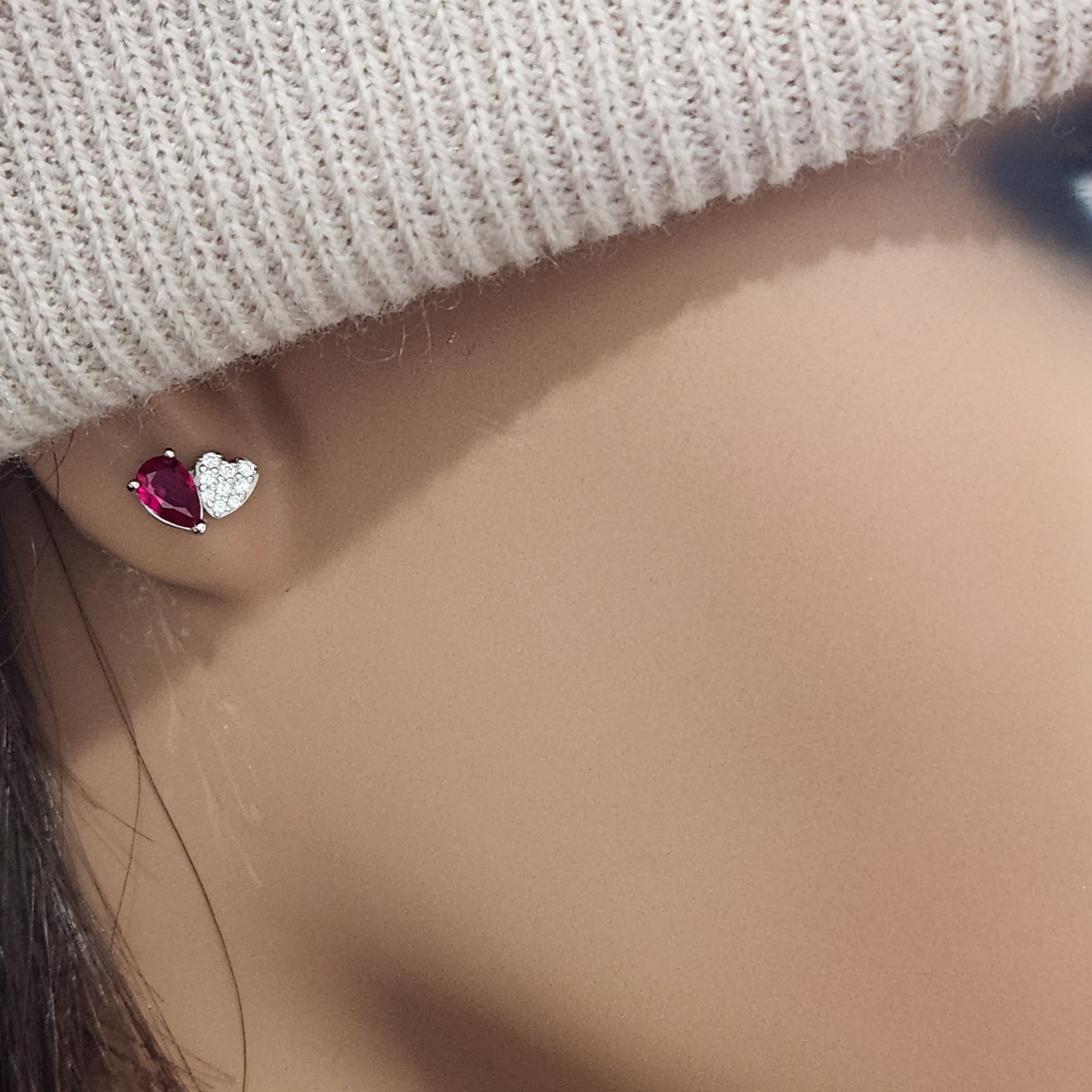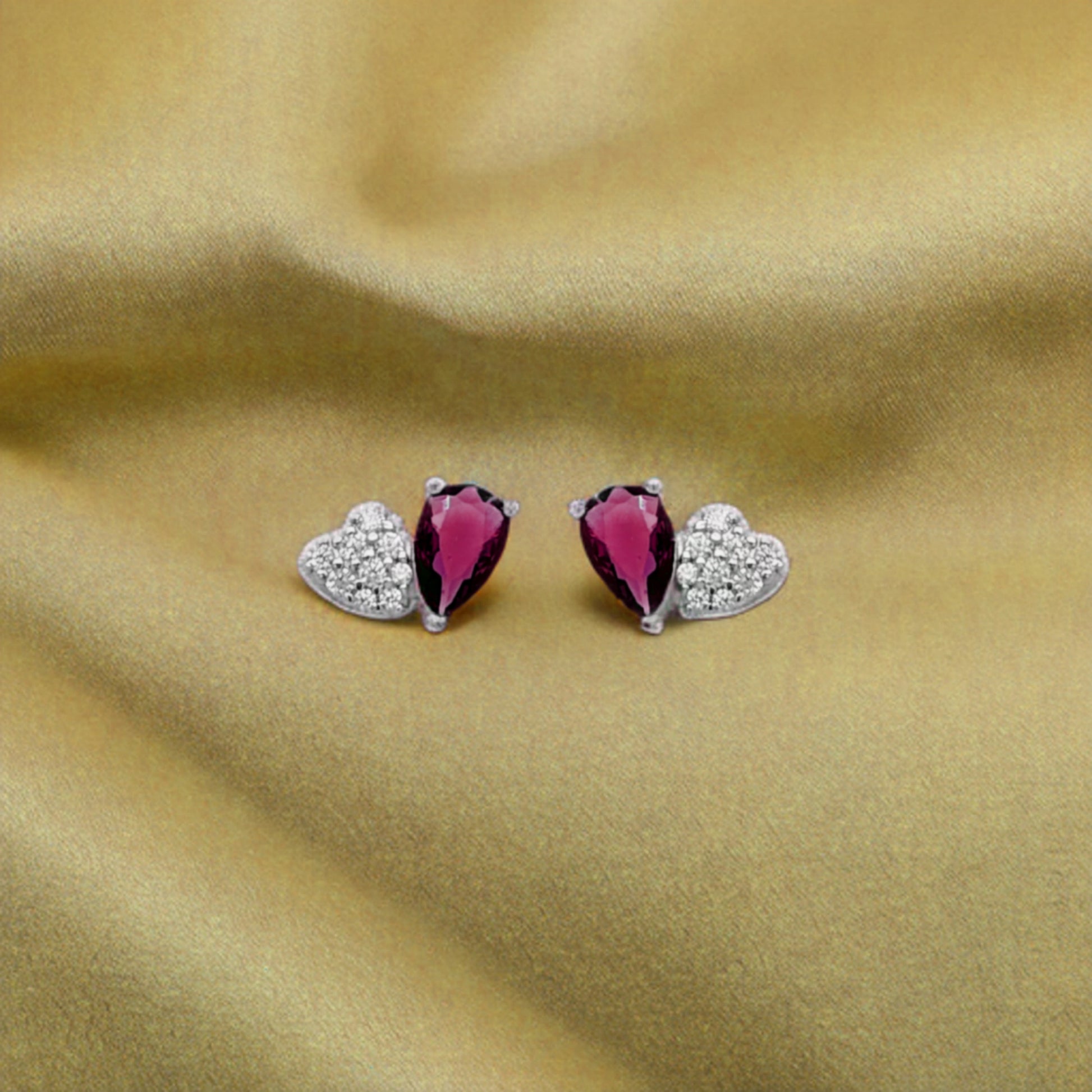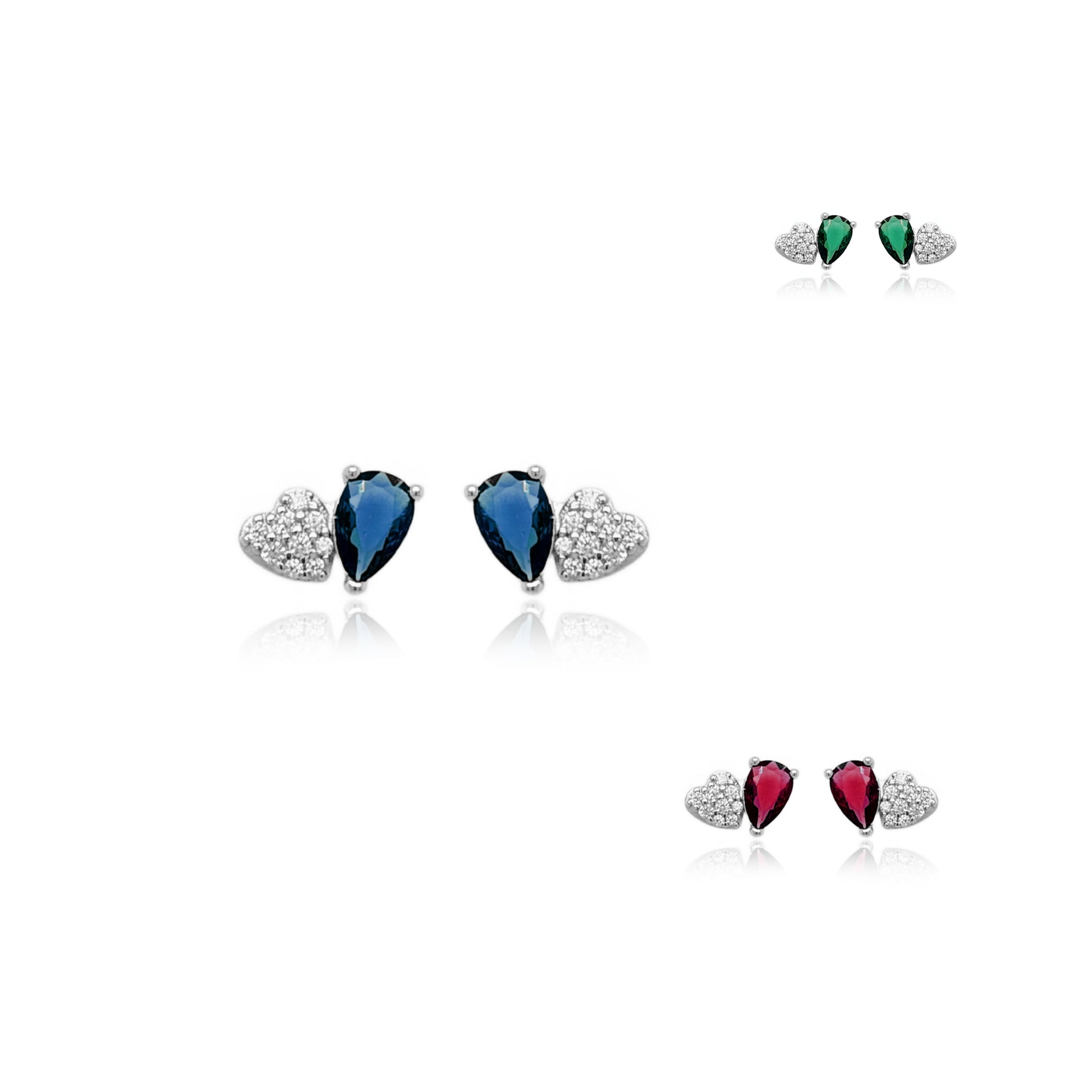 Experience the stunning beauty and sparkle of our Sterling Silver Micropave Heart earrings featuring vibrant colored pear-shaped cubic zirconia studs, measuring 6.5mm x 9.5mm. Add a touch of elegance and style to any outfit with these exquisite earrings.