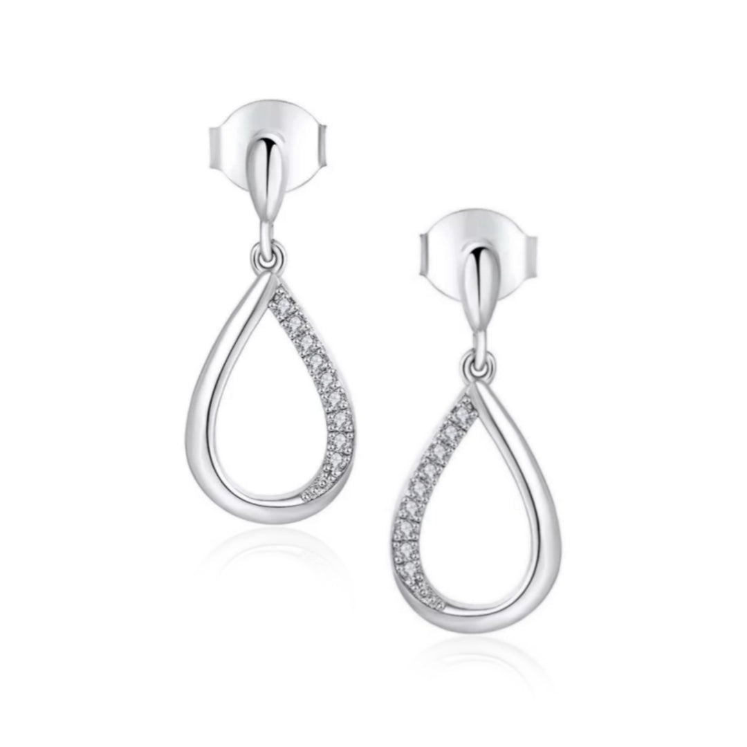 Sterling Silver Micropave Small Half CZ Teardrop Earring
