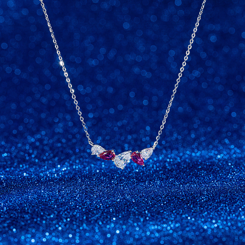 Sterling Silver Multi Pear Shaped Stones on Chain Necklace