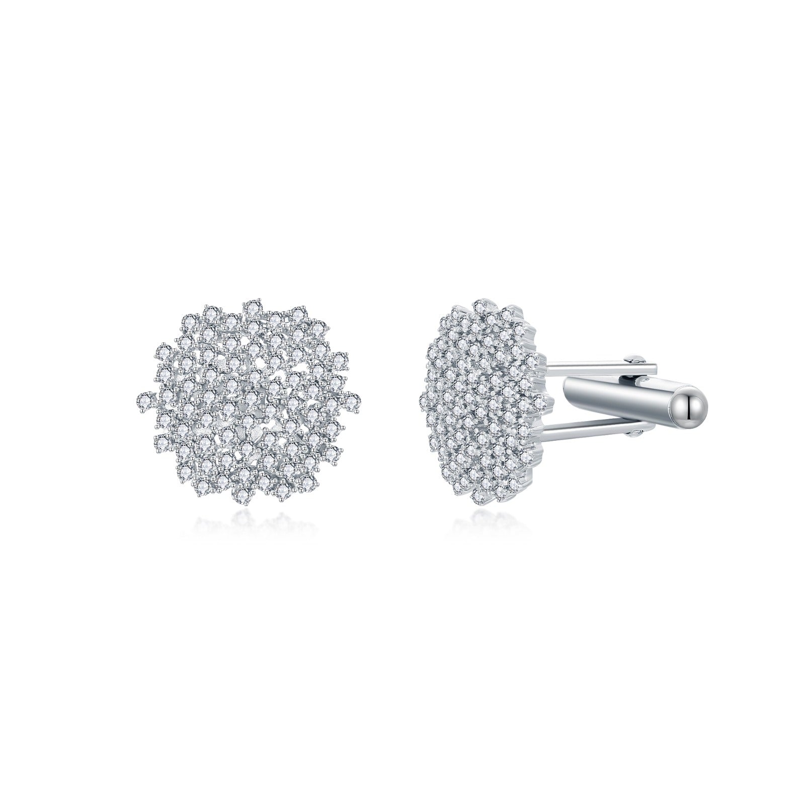 Upgrade your style with these round sterling silver cufflinks, featuring a delicate sprinkling of sparkling cubic zirconia for an elegant touch.