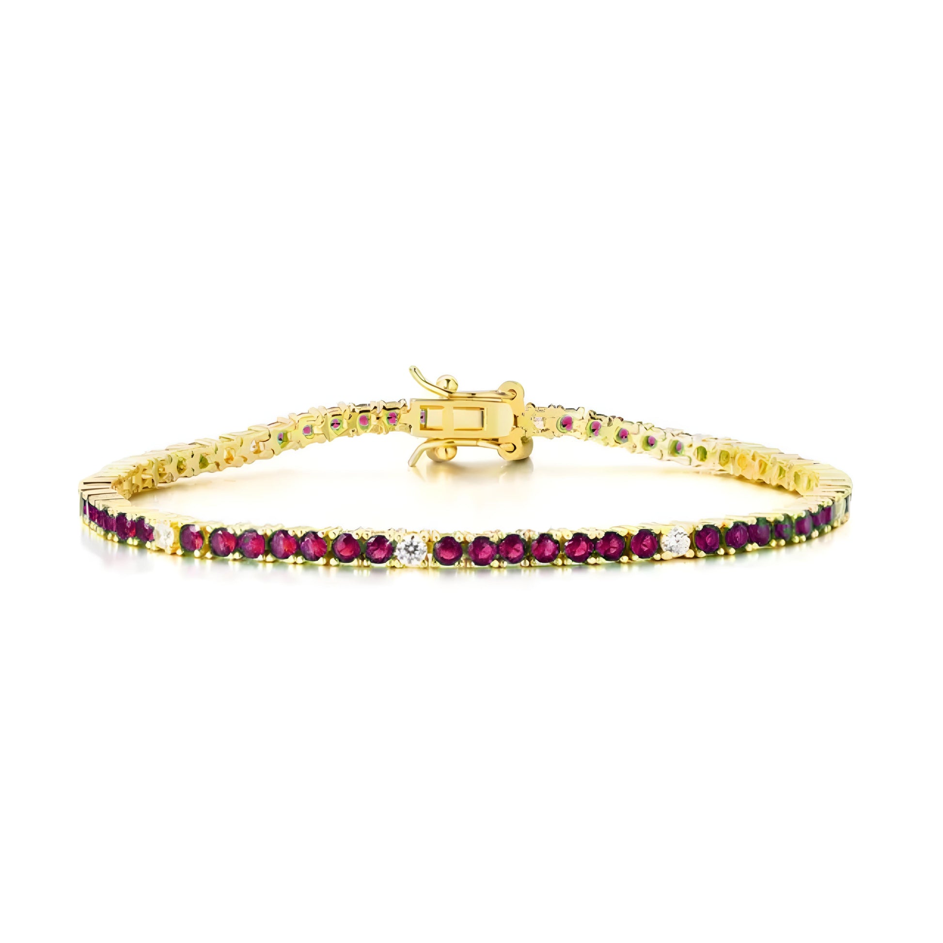 Our captivating bracelet is the perfect finishing touch to any outfit. It manages to be modern and vintage at the same time, with interspersed classically simple jewels and modern multi-colored ones. You can complement your look or create a striking contrast with our bracelet. You can wear them daily for glamorous elegance, or as a simple addition to fancy outfits. They come in eye-catching options, ravishing ruby red, classic emerald, or alluring sapphire. They're made of Sterling Silver for a finish that'll stand the test of time. The CZ stones are 2.5mm, so you can rest assured they'll be noticeable but lightweight.