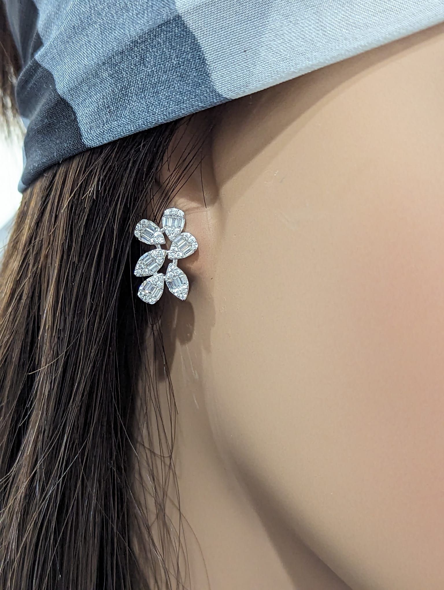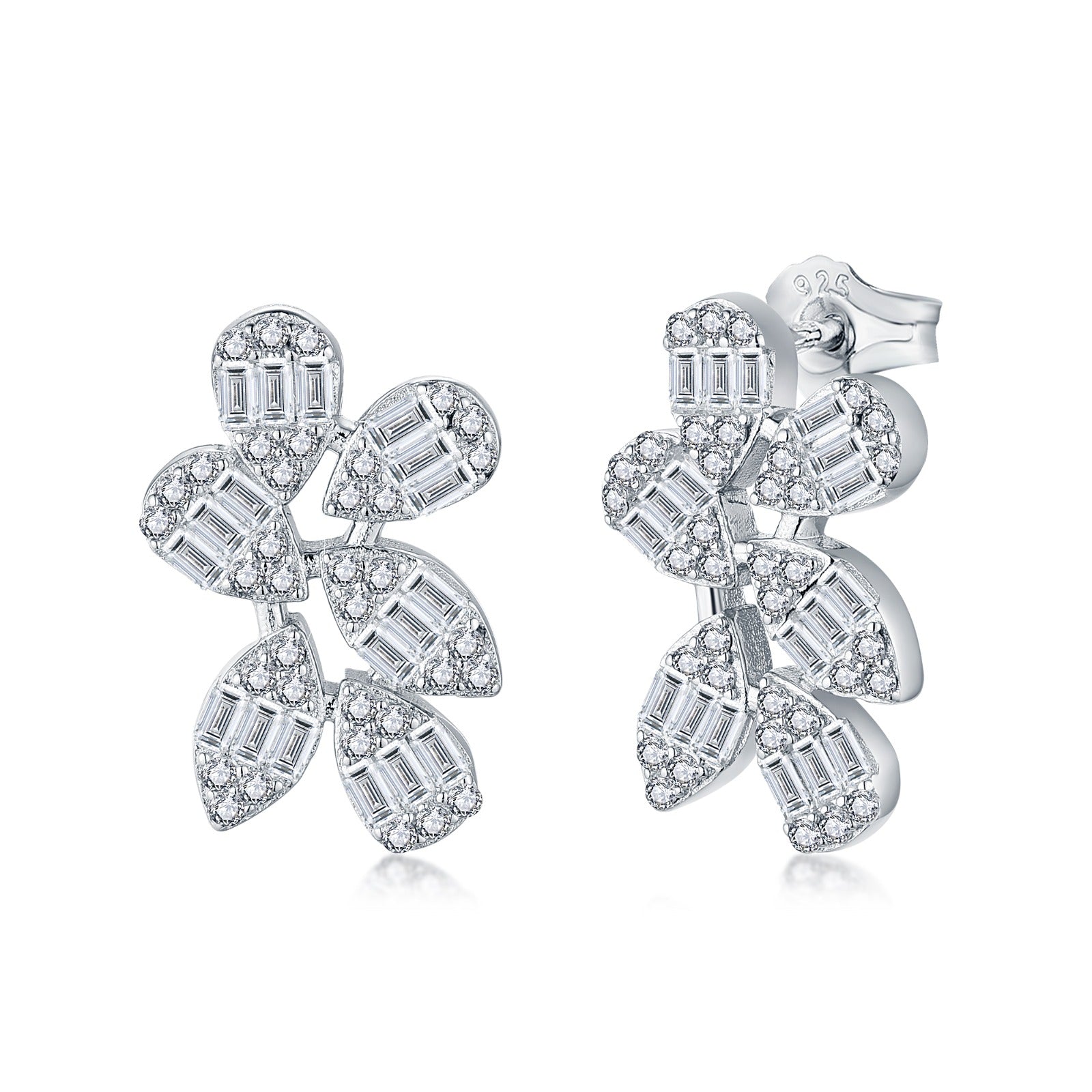 Sterling Silver Six Petal Baguette CZ Flower Stud Earring