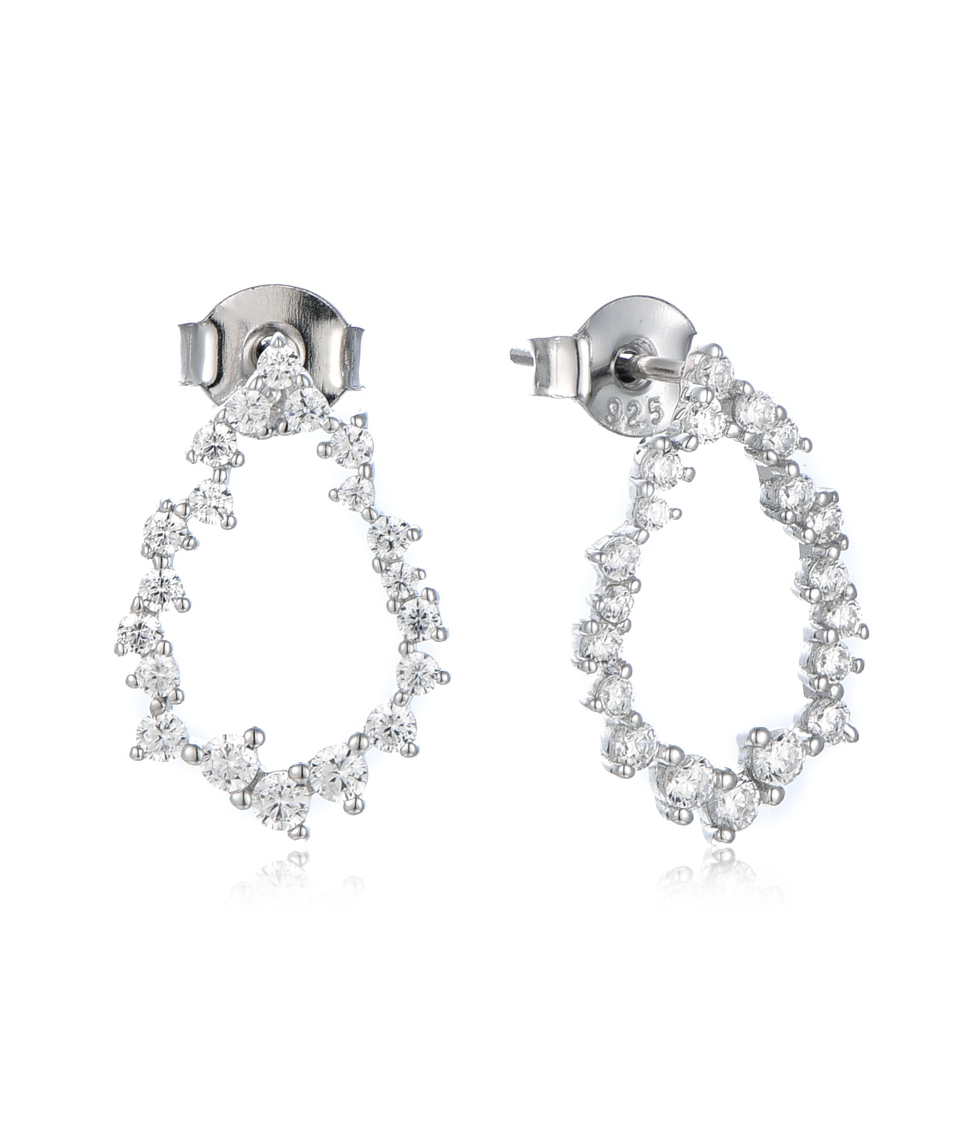Sterling Silver Small Sprinkled CZ Teardrop Earrings on Post